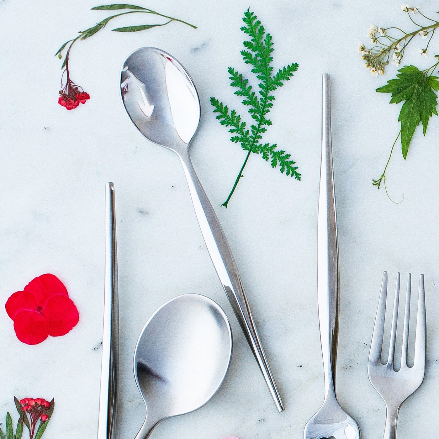 Inspired by blades of grass, the Natura Teaspoon features a grass-like line down the center of the handle. Versatile and modern, this collection comes in a glossy and satin finish.