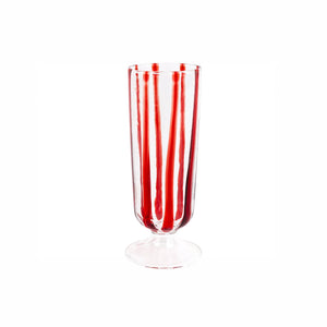 Mouthblown by skilled artisans, the Nuovo Stripe Red Champagne Glass features painterly stripes gliding down each glass, and the result is a fresh and fun addition to your table.