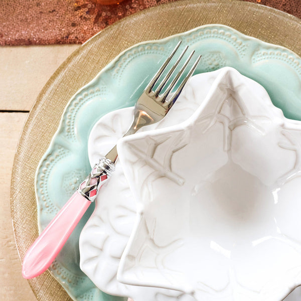 The Aladdin Brilliant Place Fork features elegant pearlized handles with the strength of high-grade acrylic and 18/10 stainless steel. This piece is also available in our antique finish.