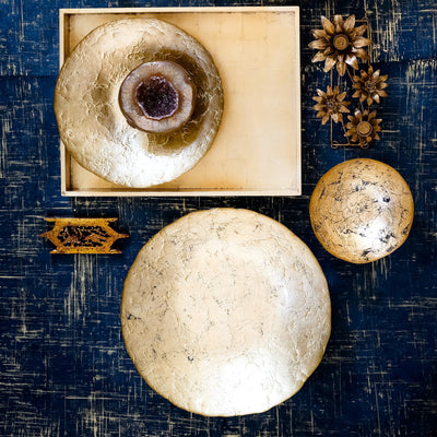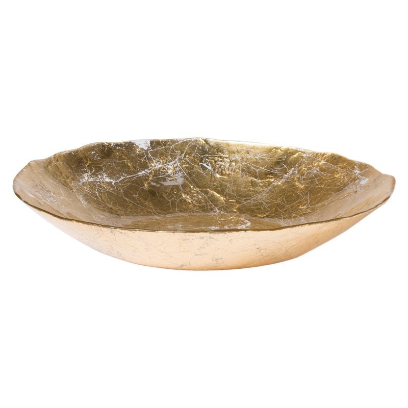 Celebrate the traditional technique used by Italians to make picture frames with the Moon Glass Large Bowl. Featuring a beautiful golden hue, each piece of Moon Glass is handpressed with metallic gold and then polished to create a textured effect.
