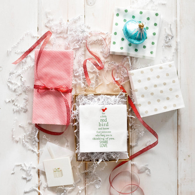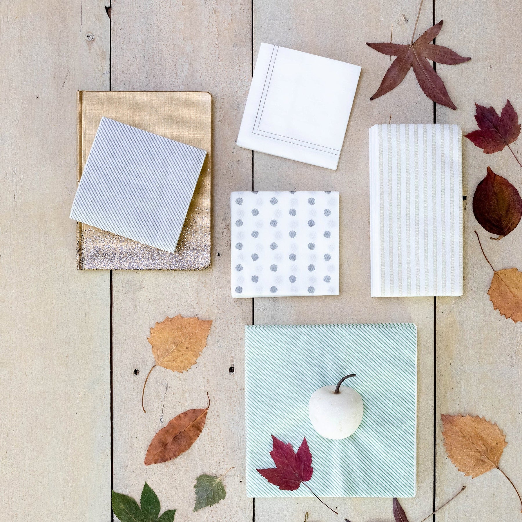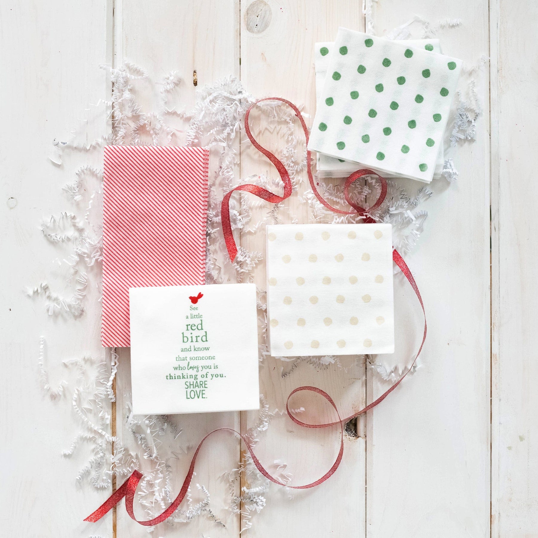 Papersoft Napkins Dot Cocktail Napkins are highly absorbent and made of a fibrous material (spunlace) in Italy. An easy grab-and-go gift for the hostess or a fun addition to your last-minute dinner party, these napkins are perfect for the holidays.