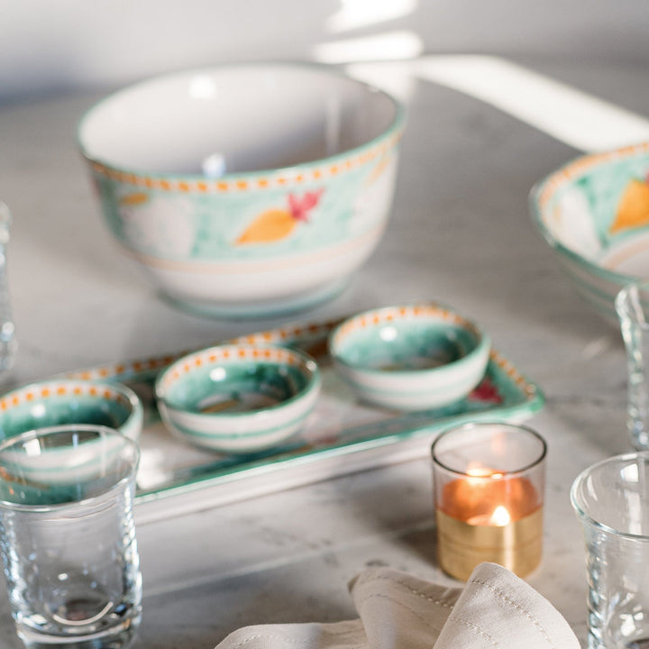 From the famed Amalfi Coast, Campagna, our flagship dinnerware, offers endless possibilities for artistic entertaining with colorful patterns that capture the vitality of the Italian countryside. Italian artisans handpaint each fluffy bunny and plump carrot on the Campagna Coniglio Deep Serving Bowl.