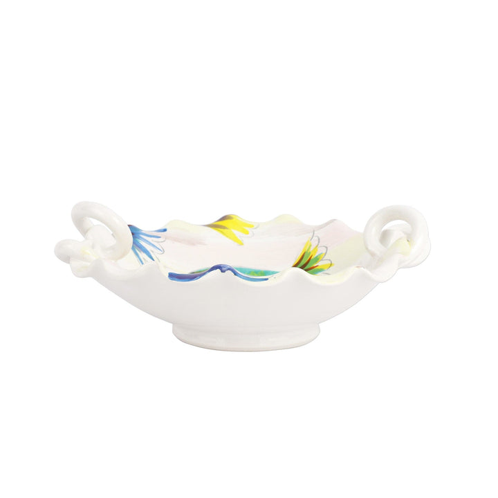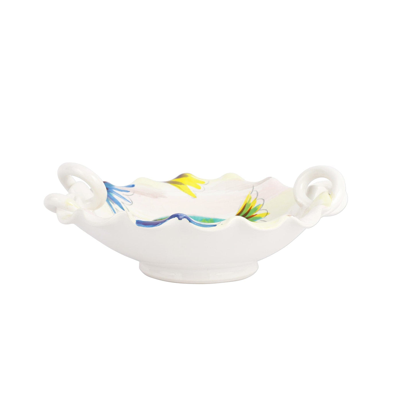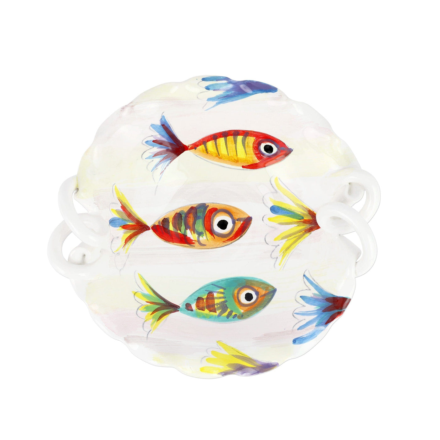 A celebration of life under the sea, Pesci Colorati features schools of vibrant, colorful, watchful fish swimming through the water. Maestro artisans handpaint each Handled Scallop Bowl, and every fish is full of charming detail: scales, observant eyes, multicolored fins, and more.