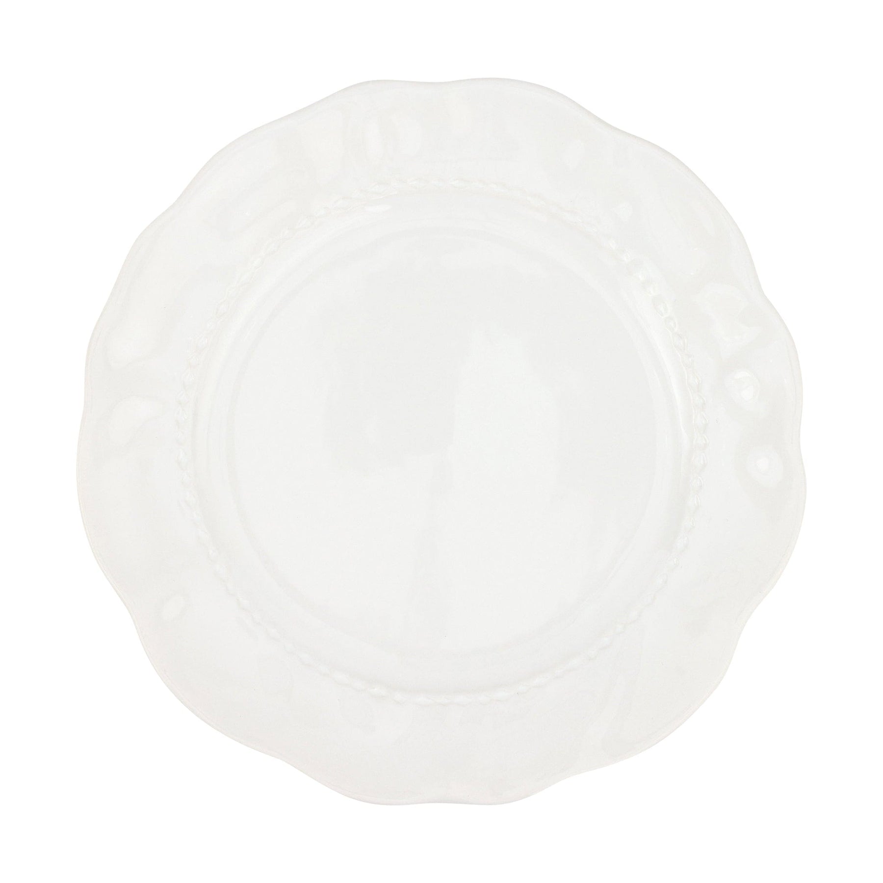 The Giorno White Dinner Plate captures the essence of casually elegant Italian style, blending both relaxed and refined elements. A wreath of precise etchings encircles the plate, while the nuanced glazing adds a beautiful patina to each piece.
