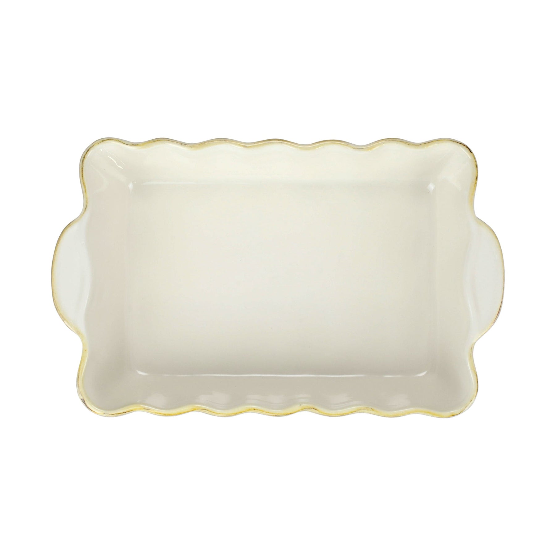Featuring scalloped edges and a bright, beautiful hue, the Italian Bakers Medium Rectangular Baker is part of VIETRI's newest line of bakeware. Handcrafted of Italian stoneware in Umbria, this useful size and fun shape is perfect for all gatherings.