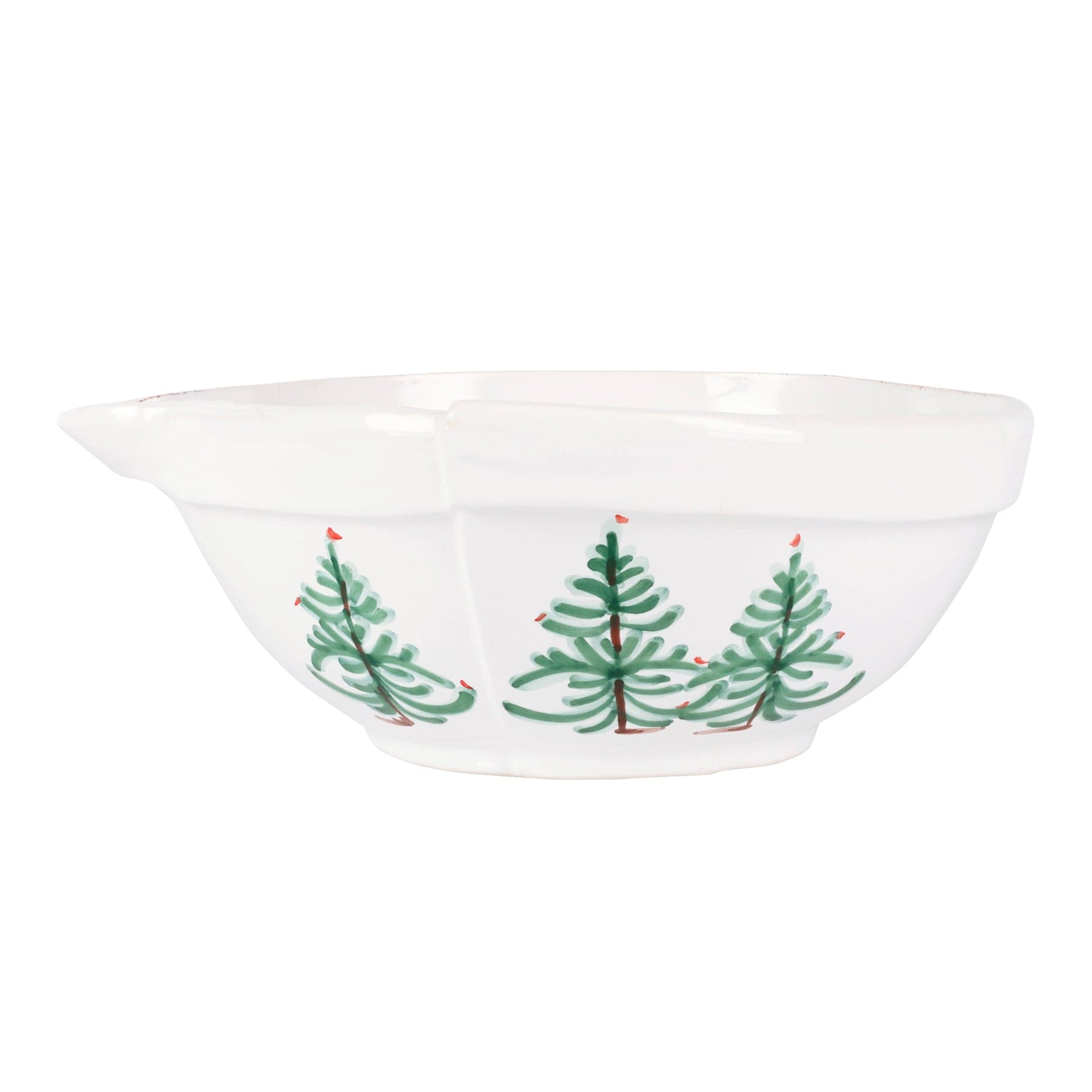 Delight in festive, irresistibly Italian magic as handpainted fir trees and bright cardinals drift across the fresh white canvas of the Lastra Holiday Large Mixing Bowl, bringing joyful spirit to your holiday baking. This is also a winning gift for anyone who enjoys cooking.