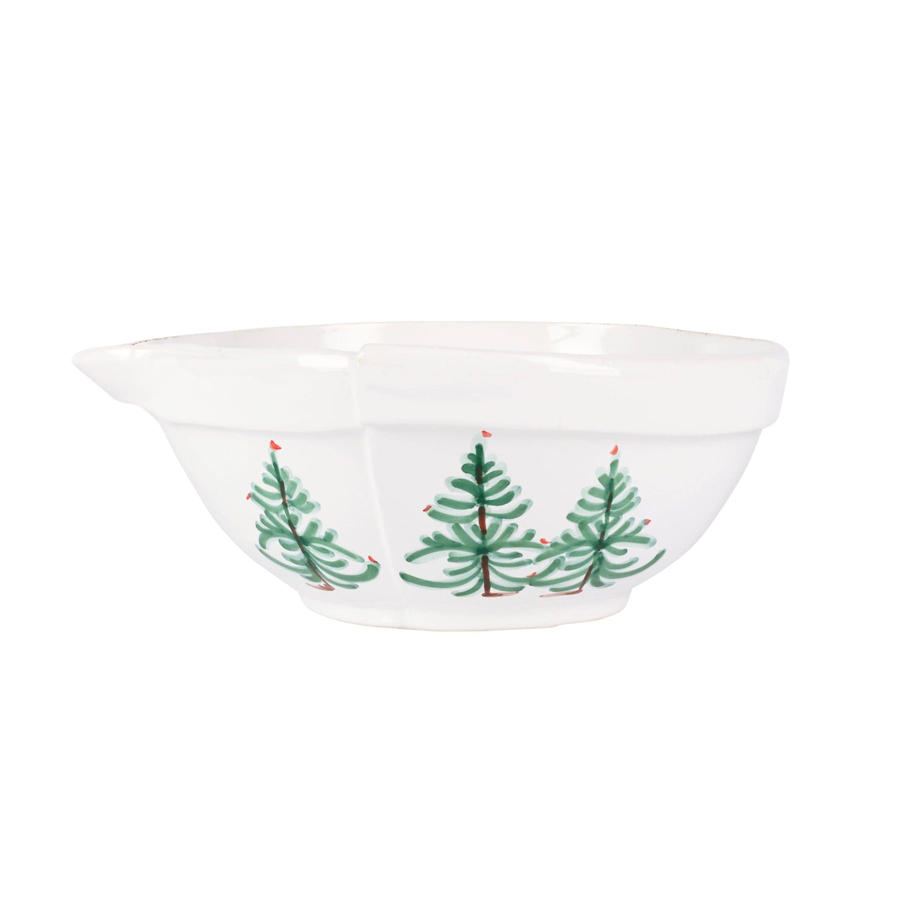 Delight in festive, irresistibly Italian magic as handpainted fir trees and bright cardinals drift across the fresh white canvas of the Lastra Holiday Medium Mixing Bowl, bringing joyful spirit to your holiday baking. This is also a winning gift for anyone who enjoys cooking.