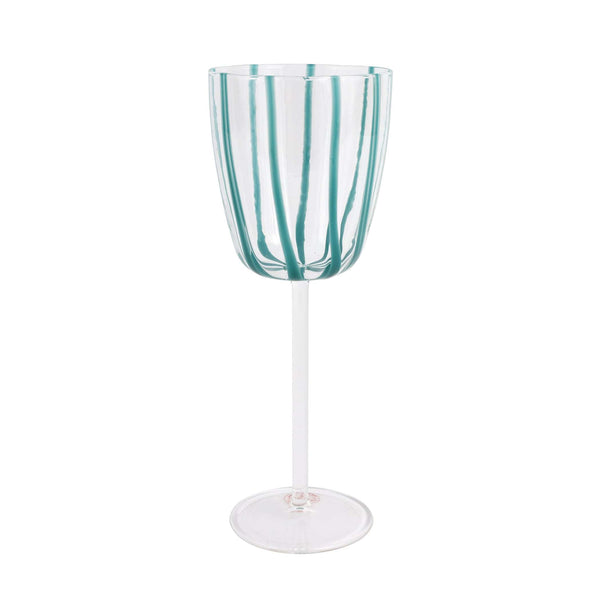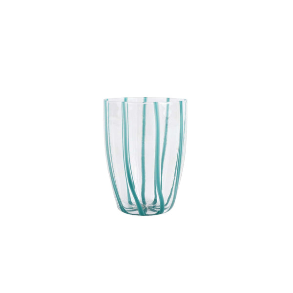 Mouthblown by skilled artisans, the Nuovo Stripe Green Stemless Wine Glass features painterly stripes gliding down each glass, and the result is a fresh and fun addition to your table.