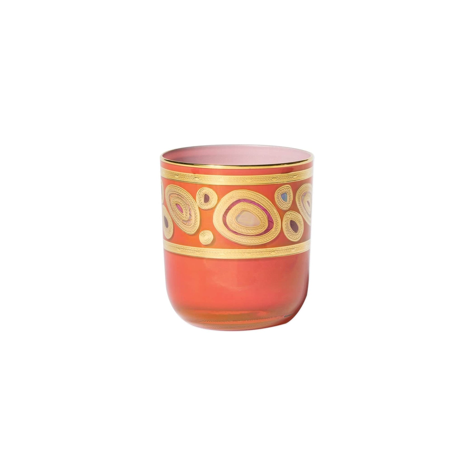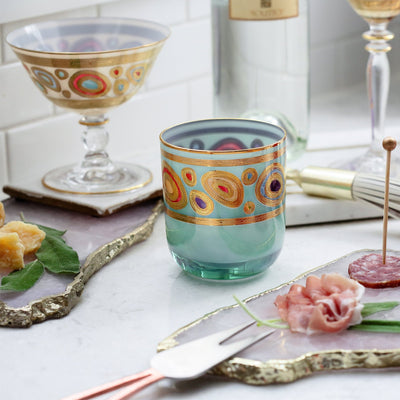 Our Regalia collection was inspired by the ornate emblems and decorations that are indicative of royalty. The Regalia Double Old Fashioned is handpainted in 14-karat gold.