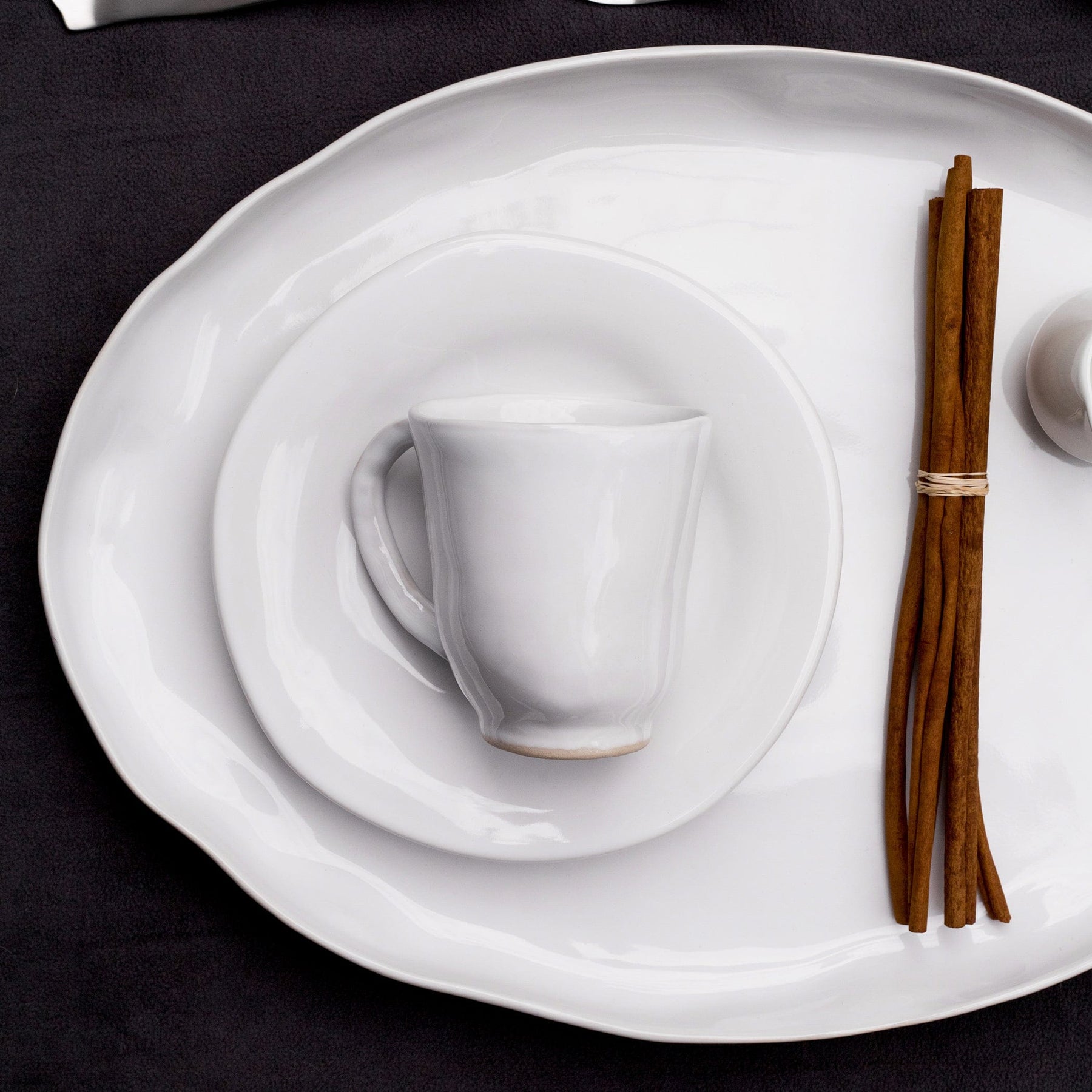 The Forma Cloud Mug boasts stoneware strength and the authentic shape of a handformed work of art. Whether part of an all-white table setting or mixed in with other collections and colors, the mug makes a simple yet striking statement.