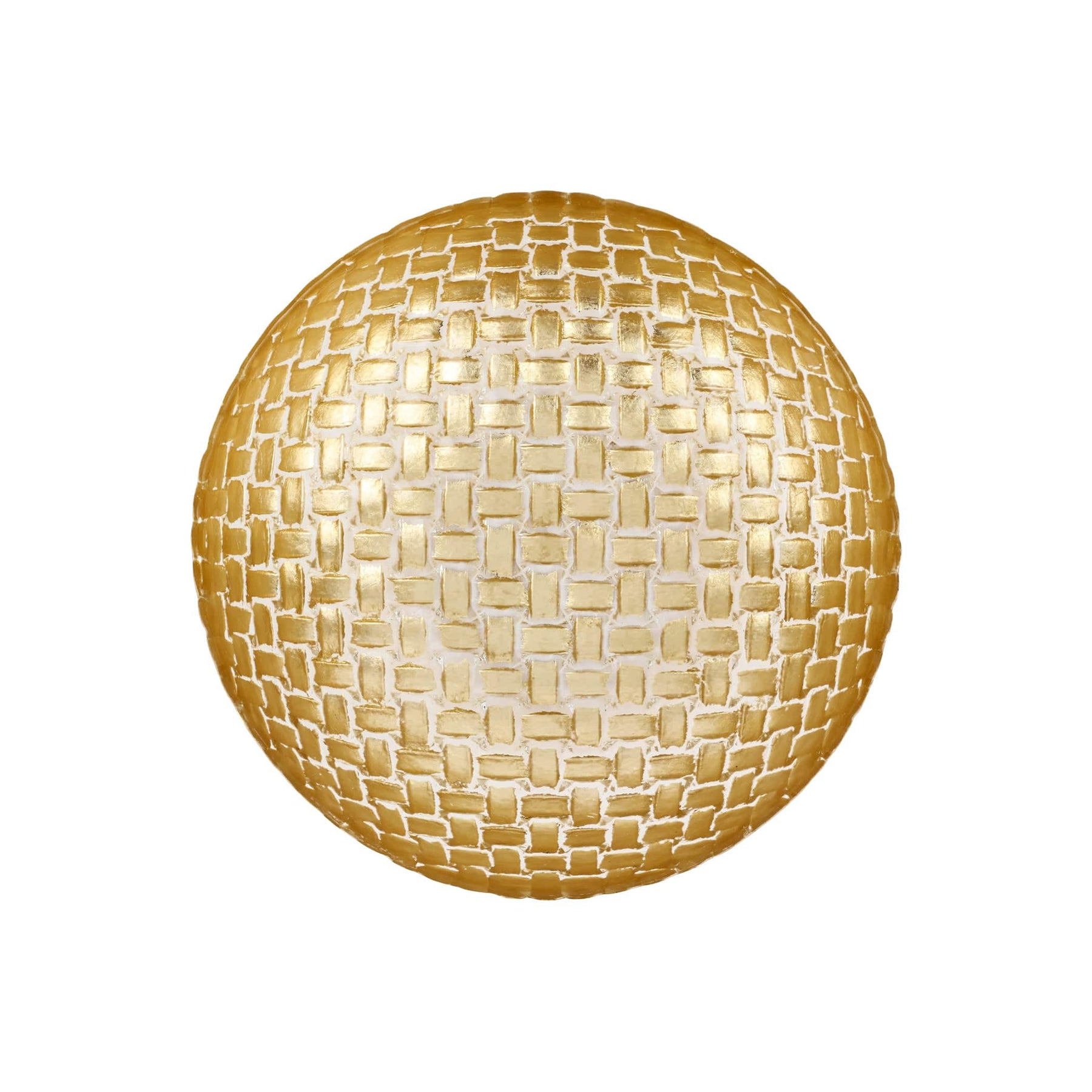 The Rufolo Glass Gold Basketweave Small Serving Bowl brings luster to your table. The glass piece features a beautiful layer that brings dimension, elegance, and irresistibly Italian style to your table and home.