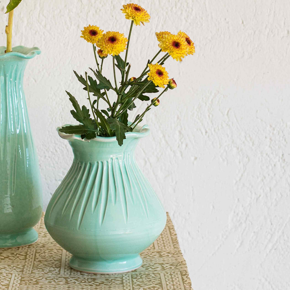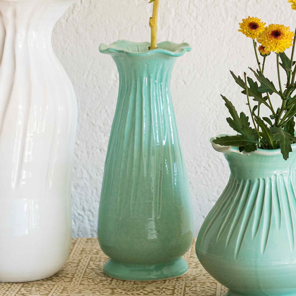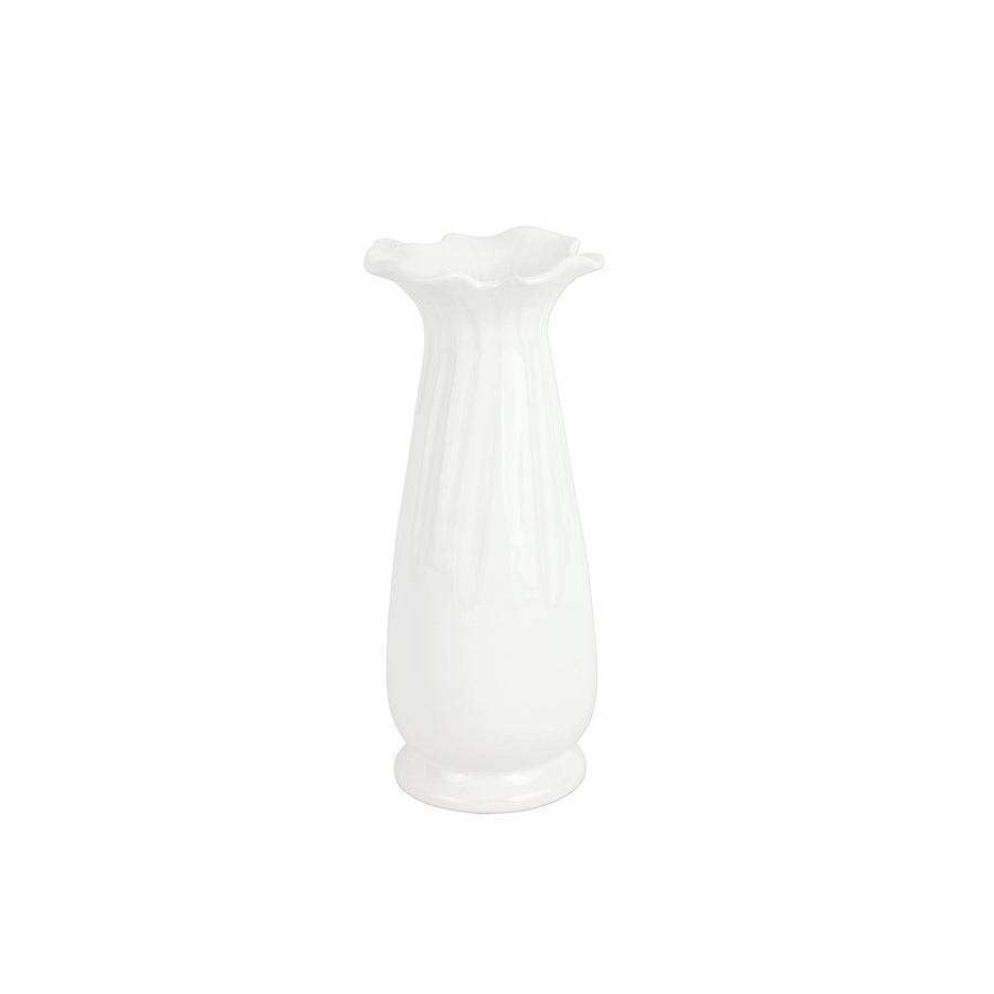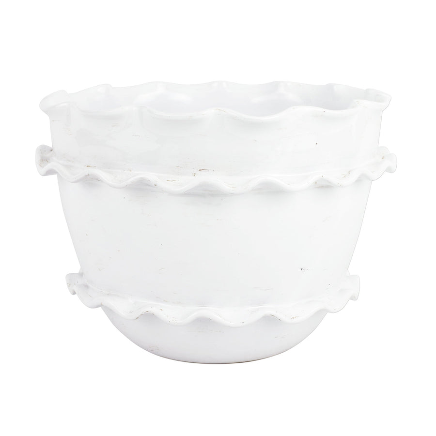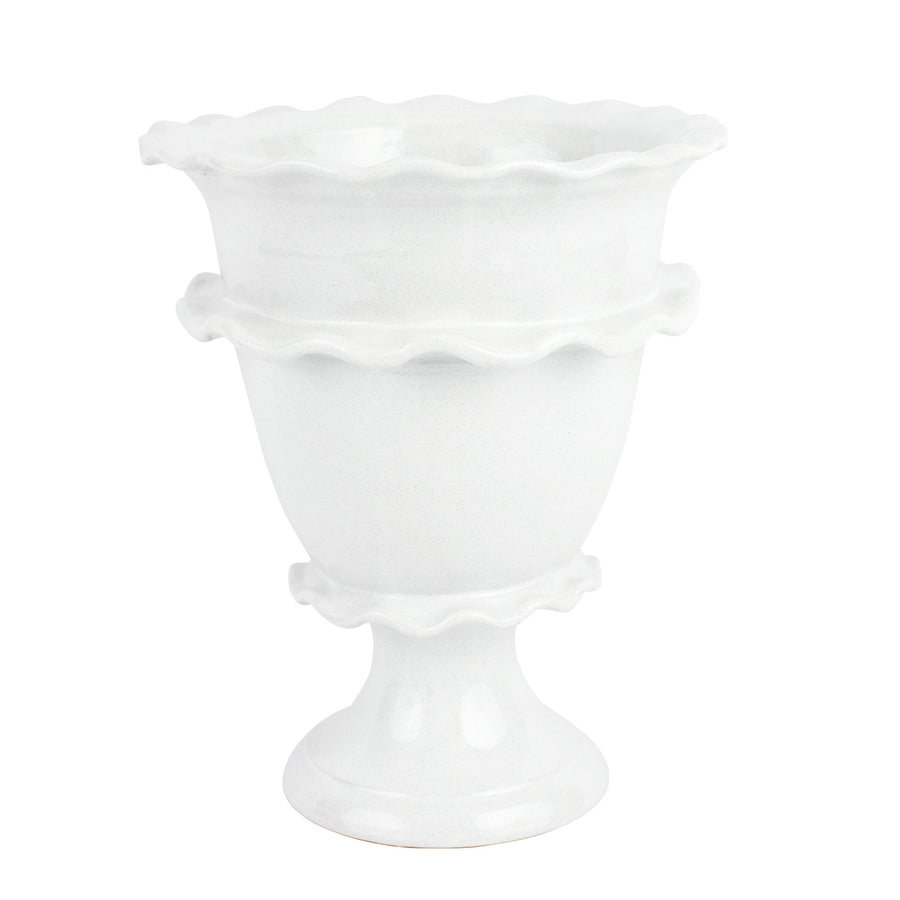 Rustic Garden White Ruffle Tall Footed Cachepot