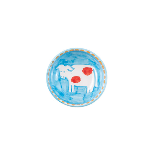 The Campagna Mucca Olive Oil Bowl features a whimsical handpainted cow and is part of our flagship dinnerware colllection from the famed Amalfi Coast.