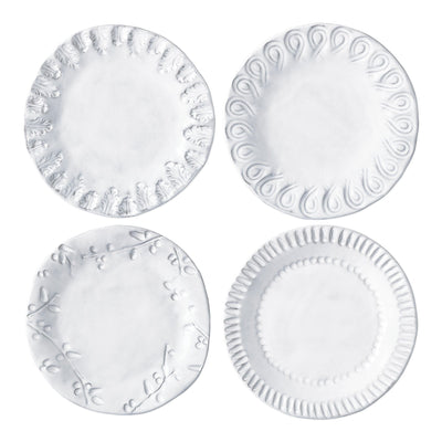Italian for enchantment, Incanto is inspired by Italian art, the landscape, and Venetian history. The Incanto Assorted Canape Plates pay homage to Venice’s famous lace, gardens, and architecture. Delightfully detailed, these charming plates are perfect for appetizers, as a bread plate, or for small desserts.