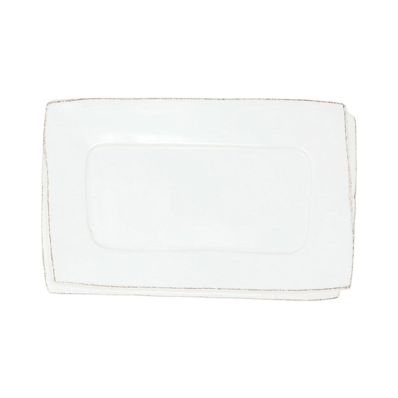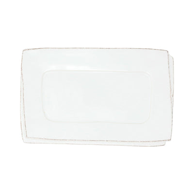 A beautiful combination of bright white with subtle rustic accents, the Lastra White Small Rectangular Tray is perfect for serving olives and grapes or an assortment of fresh fruit.