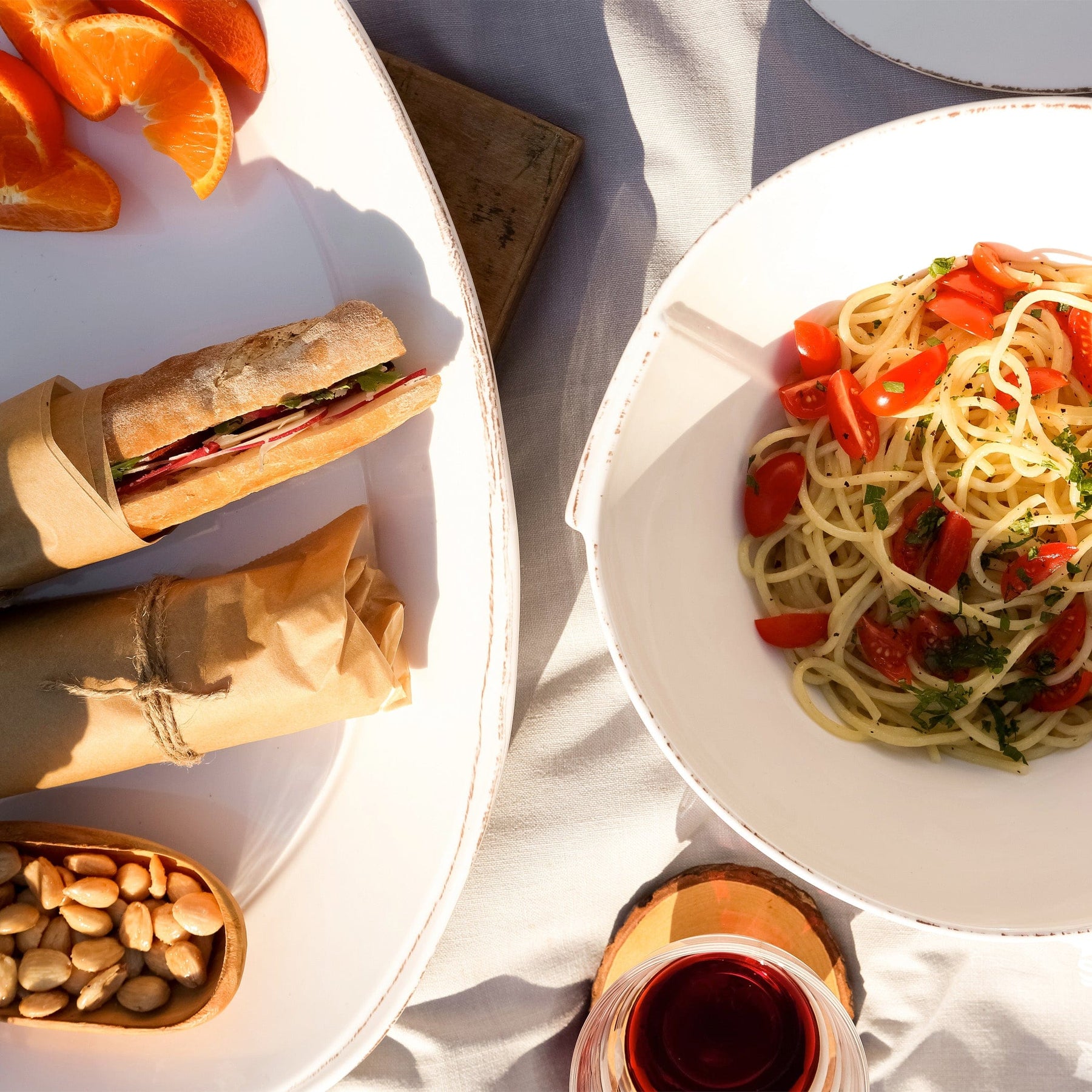 Shatterproof and ultra-chic, the Melamine Lastra White Oval Platter replicates the beauty of Lastra in the perfect picnic accessory. Lightweight yet sturdy with a glossy finish, this collection is ideal for outdoor use or meals with children.