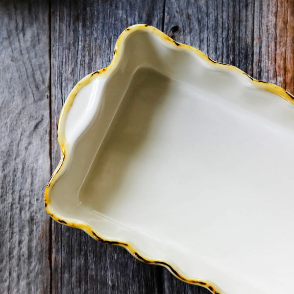 Featuring scalloped edges and a bright, beautiful hue, the Italian Bakers Small Rectangular Baker is part of VIETRI's newest line of bakeware. Handcrafted of Italian stoneware in Umbria, this petite size and fun shape is perfect for all gatherings.