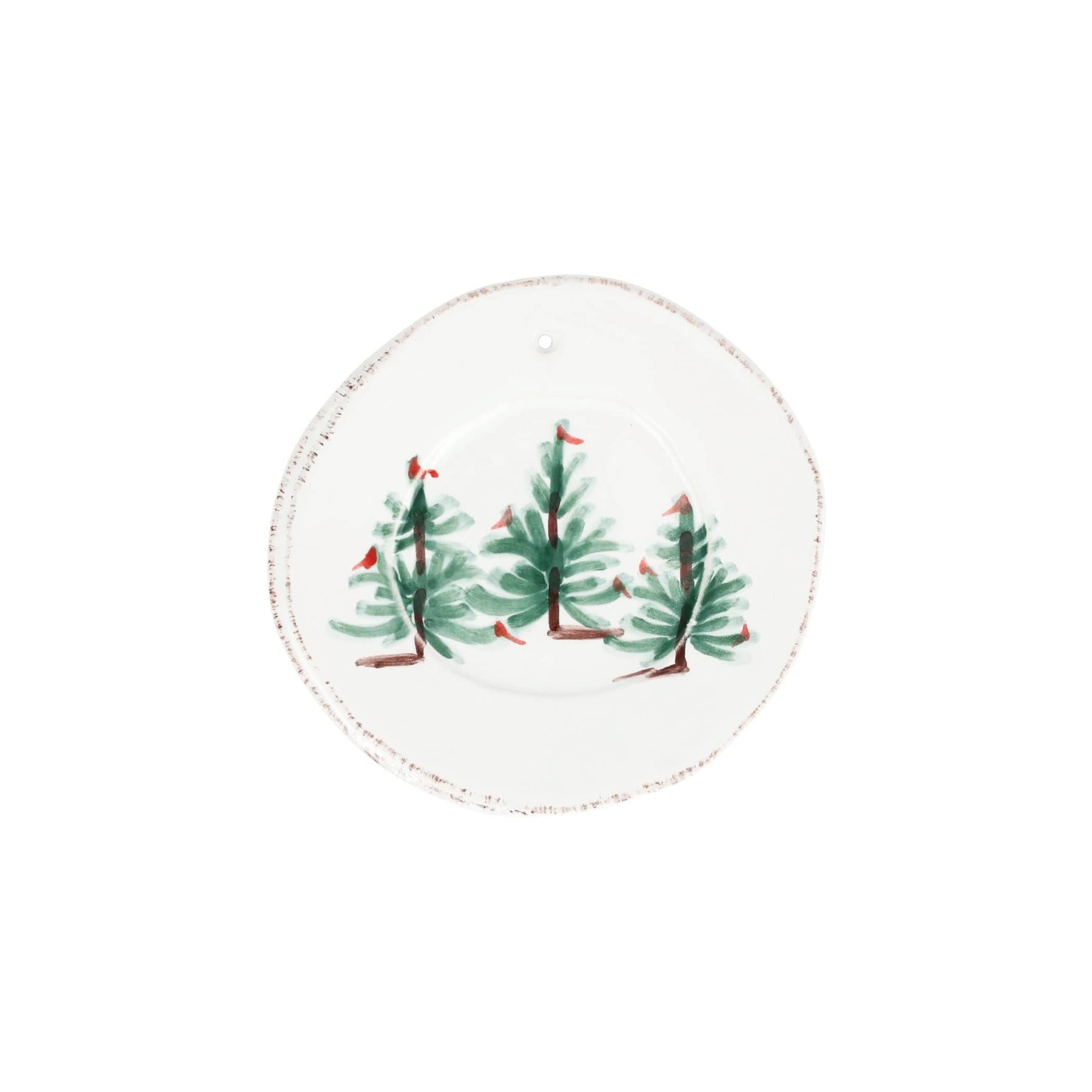 Mouthblown and handpainted in Italy, delight in the holiday magic as handpainted fir trees and bright cardinals settle on the fresh white canvas of the Lastra Holiday Round Ornament. Add this traditional ornament to your tree or give as a gift during your annual Christmas party. Packaged in a protective clear ornament box great for gifting.