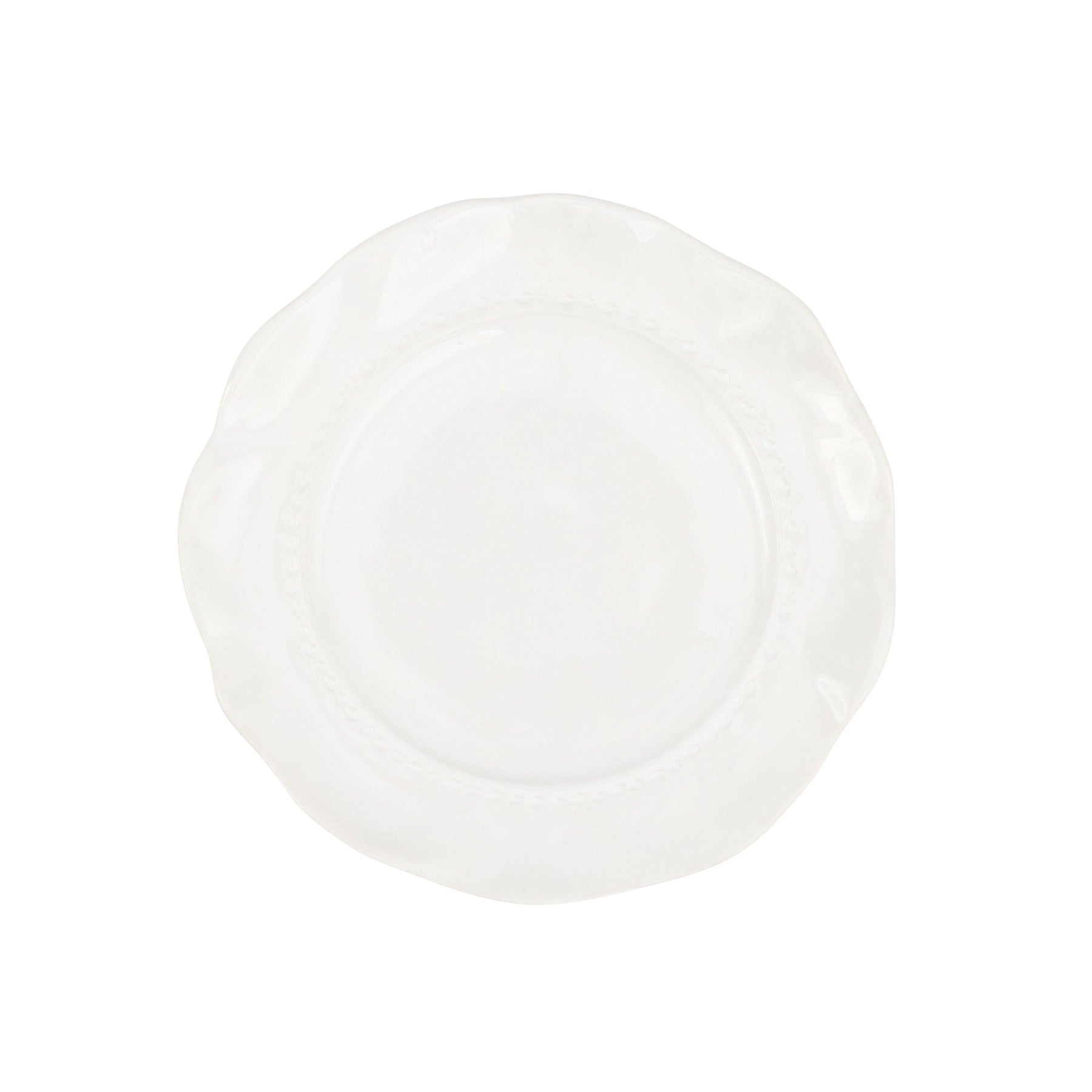 The Giorno White Salad Plate captures the essence of casually elegant Italian style, blending both relaxed and refined elements. A wreath of precise etchings encircles the plate, while the nuanced glazing adds a beautiful patina to each piece.
