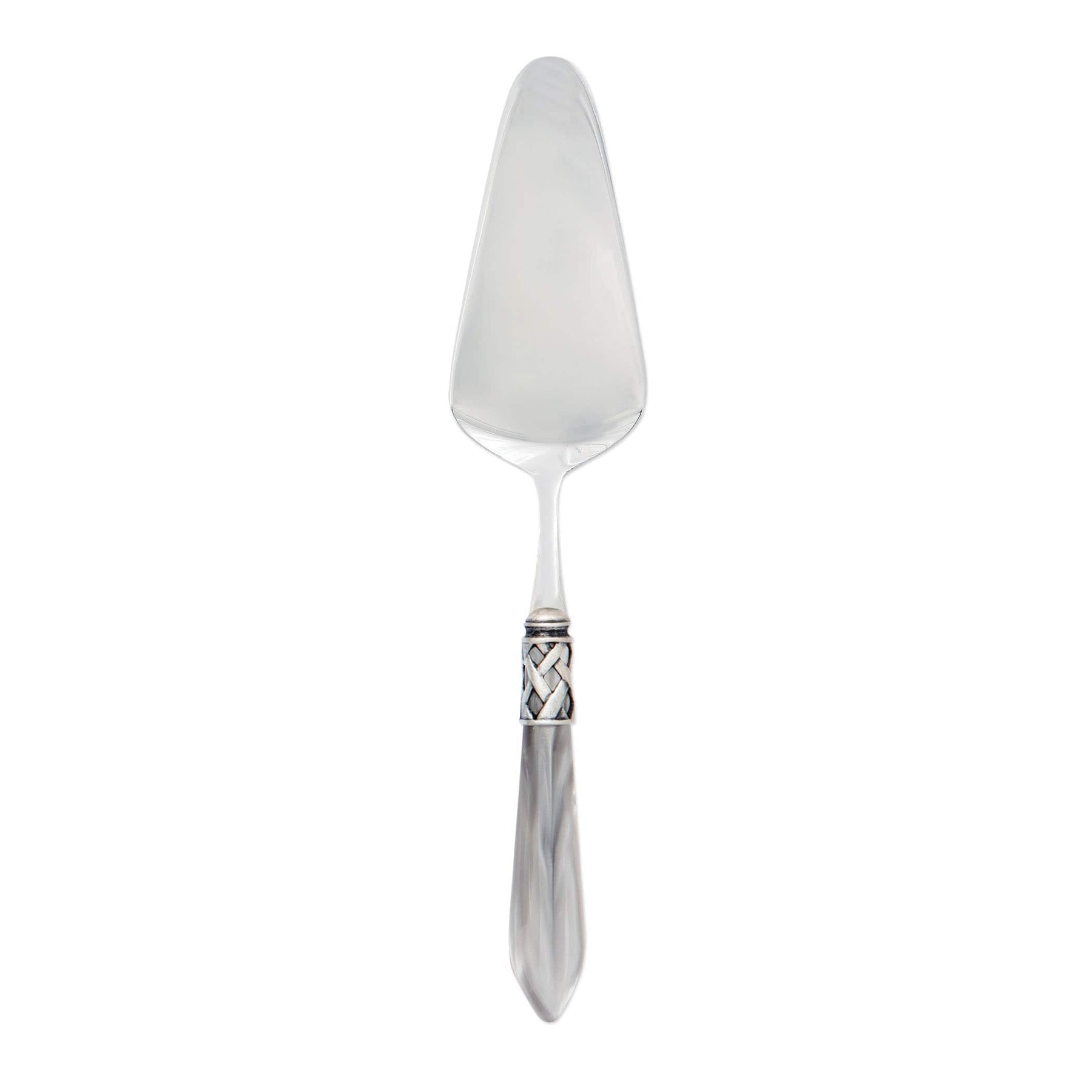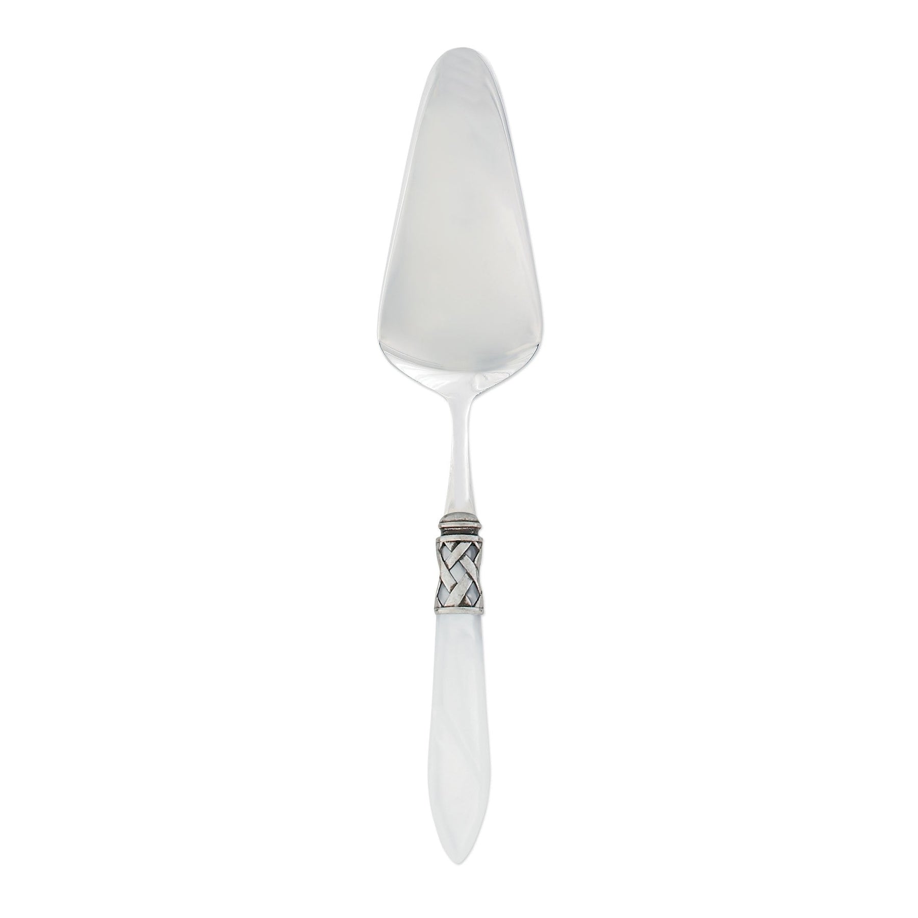 The Aladdin Antique Pastry Server features elegant pearlized handles with the strength of high-grade acrylic and 18/10 stainless steel. This piece is also available in our brilliant finish.