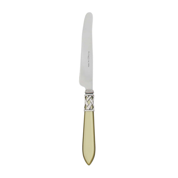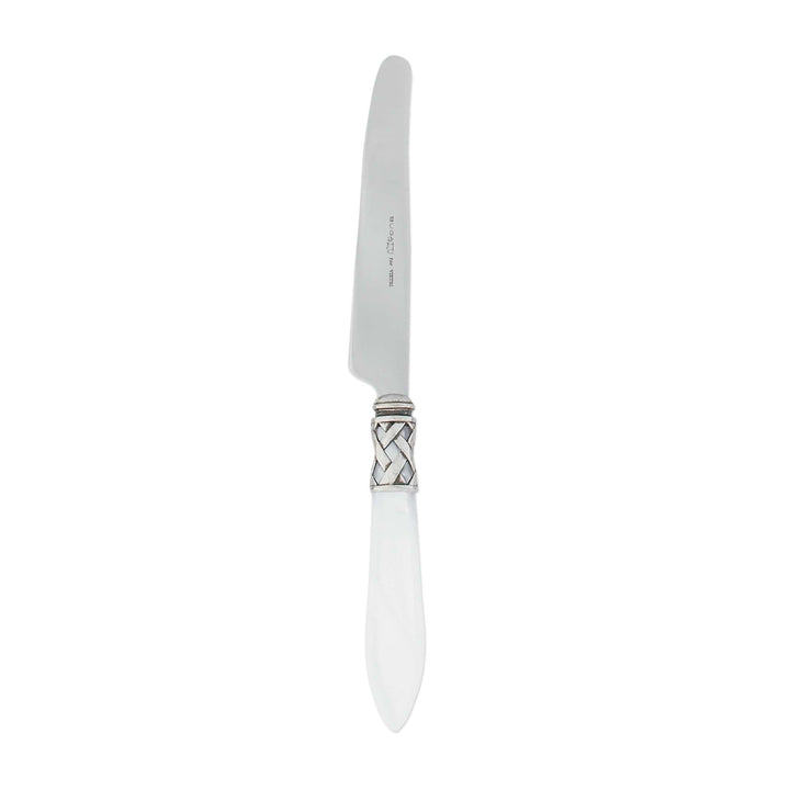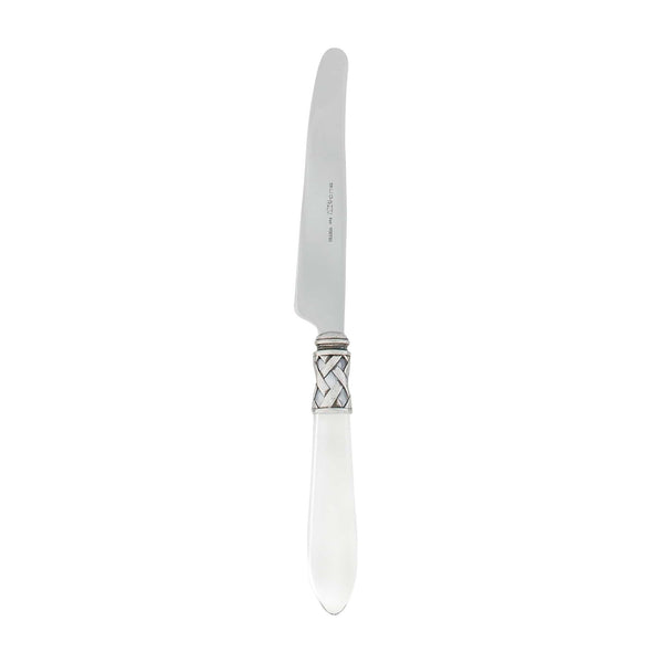 The Aladdin Antique Place Knife features elegant pearlized handles with the strength of high-grade acrylic and 18/10 stainless steel. This piece is also available in our brilliant finish.