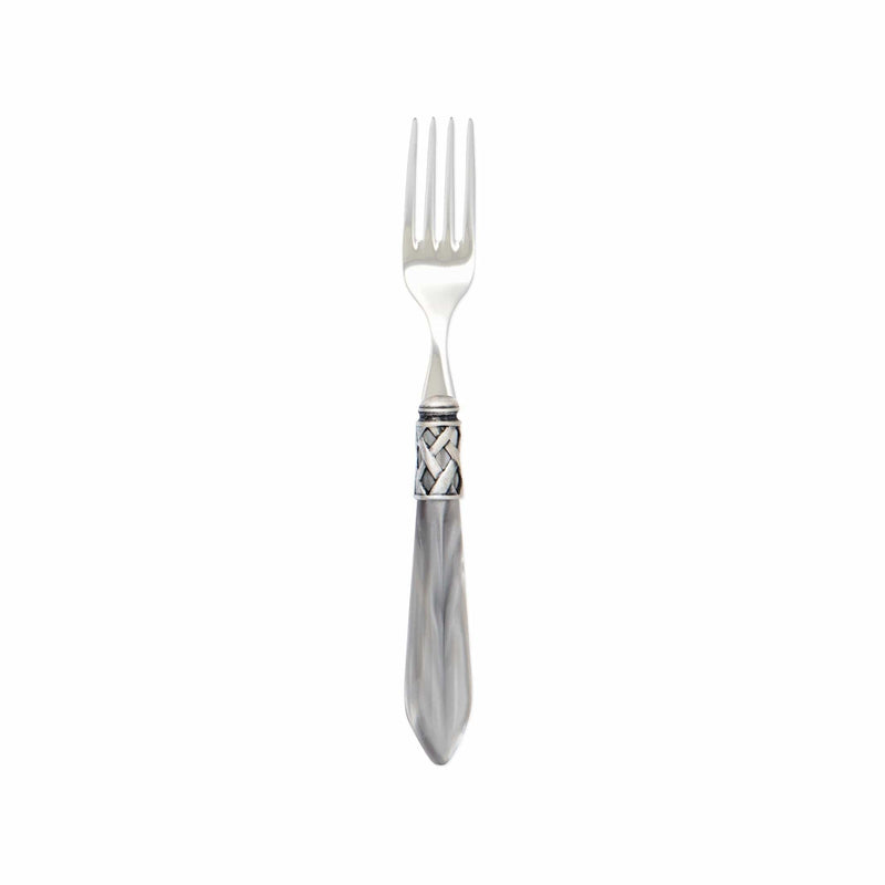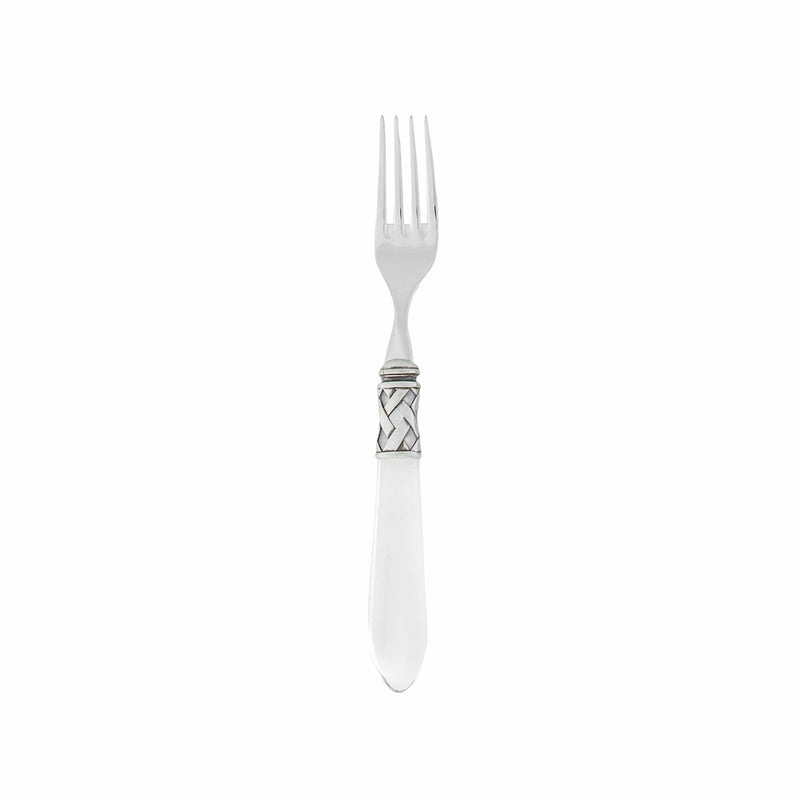The Aladdin Antique Salad Fork features elegant pearlized handles with the strength of high-grade acrylic and 18/10 stainless steel. This piece is also available in our brilliant finish.