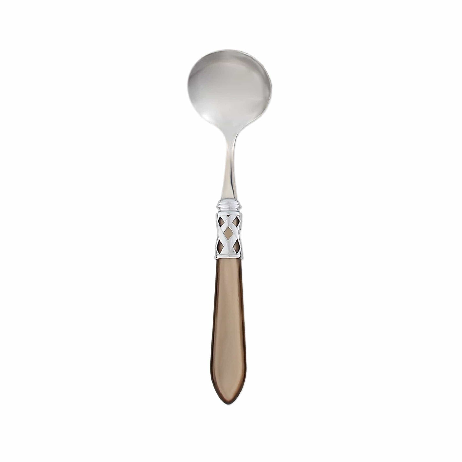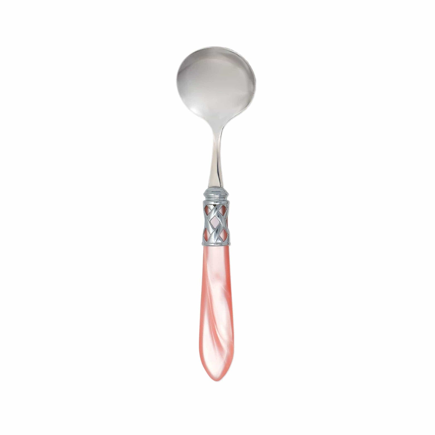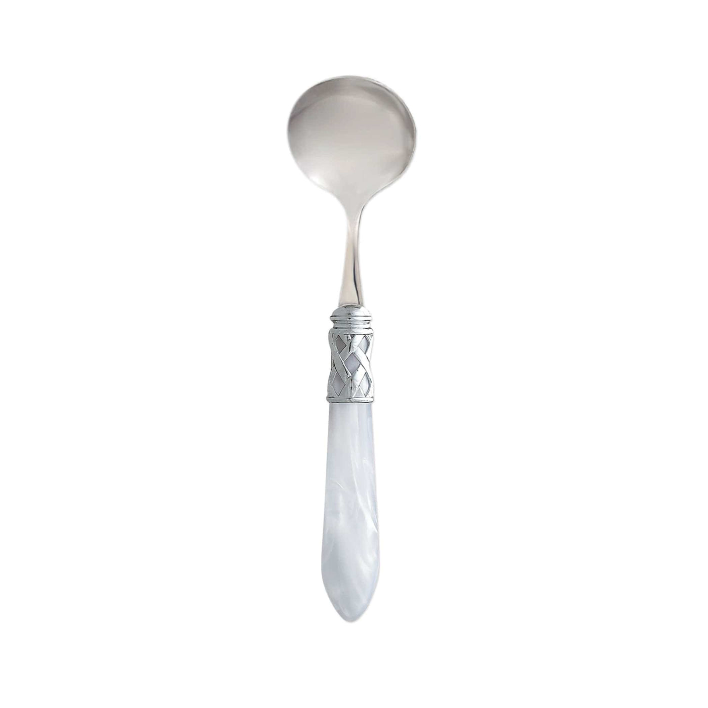 The Aladdin Brilliant Sauce Ladle features elegant pearlized handles with the strength of high-grade acrylic and 18/10 stainless steel. This piece is also available in our antique finish.