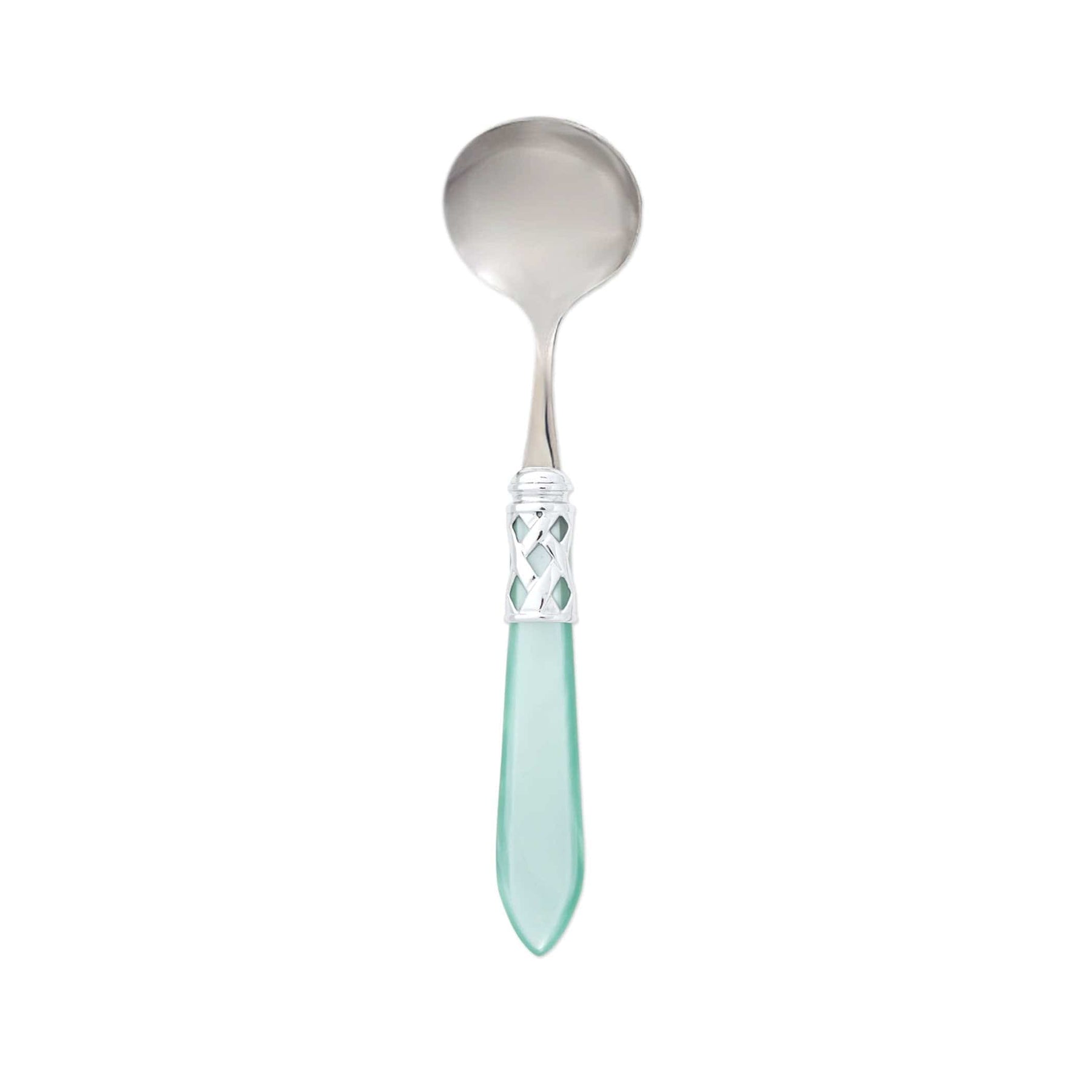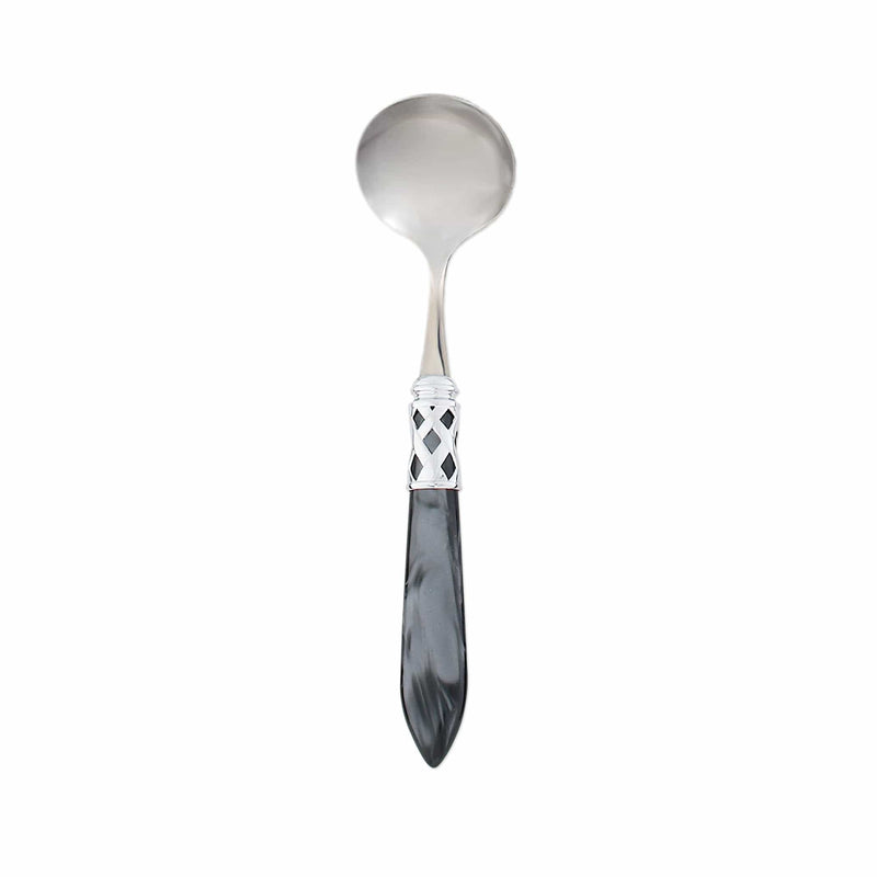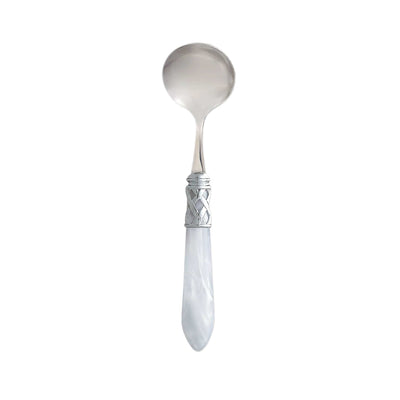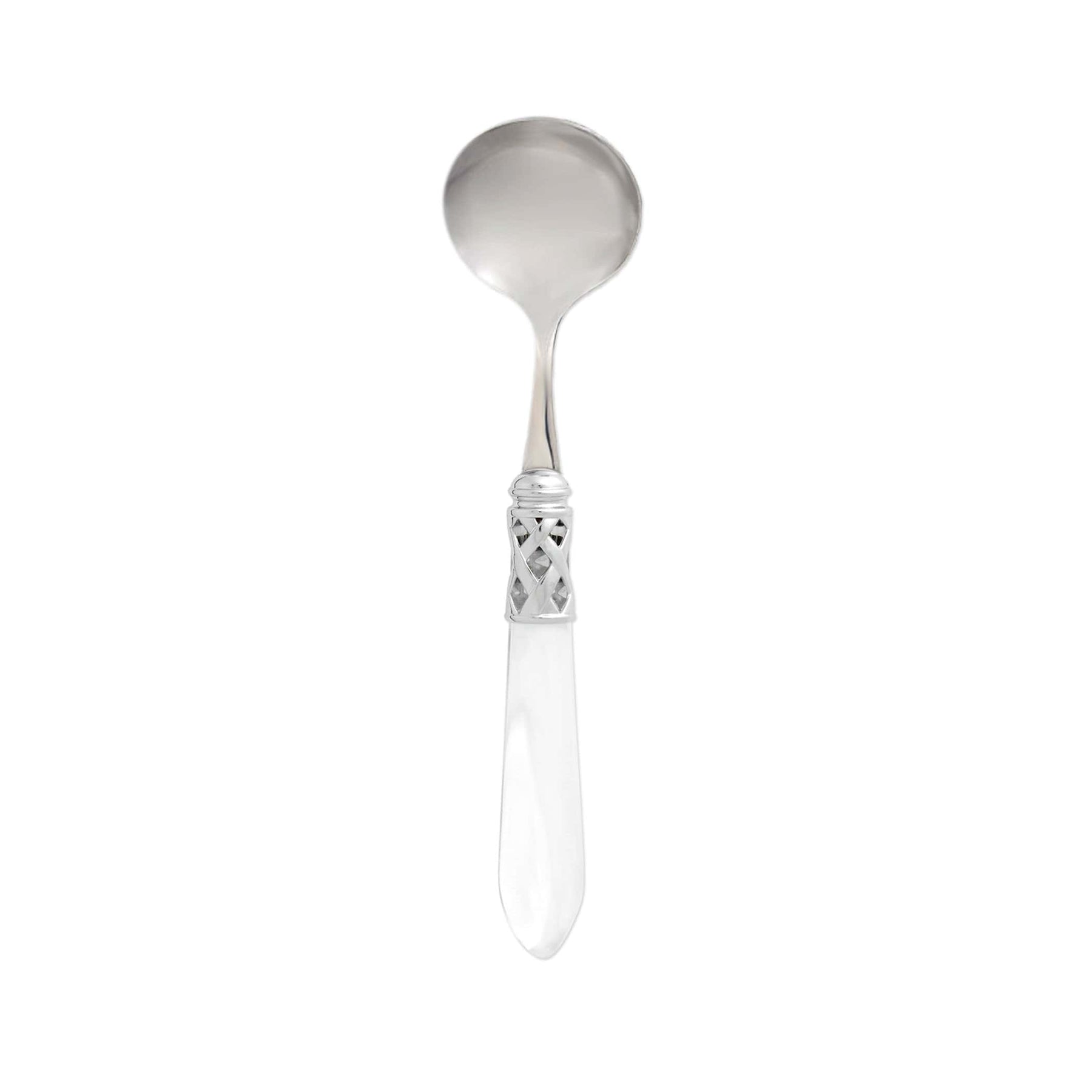 The Aladdin Brilliant Sauce Ladle features elegant pearlized handles with the strength of high-grade acrylic and 18/10 stainless steel. This piece is also available in our antique finish.