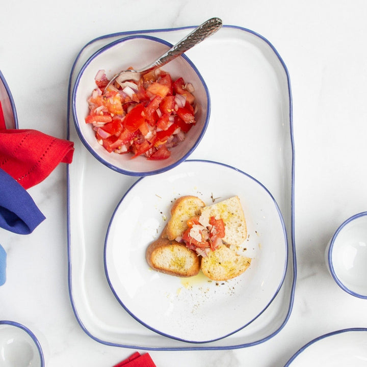 The Aurora Edge Rectangular Platter, in its vibrant, cobalt hue, is the unique result of a reactive glaze paired with the craftsmanship of skilled artisans. Handcrafted in Veneto, Italy, this serving piece is as durable as it is beautiful.