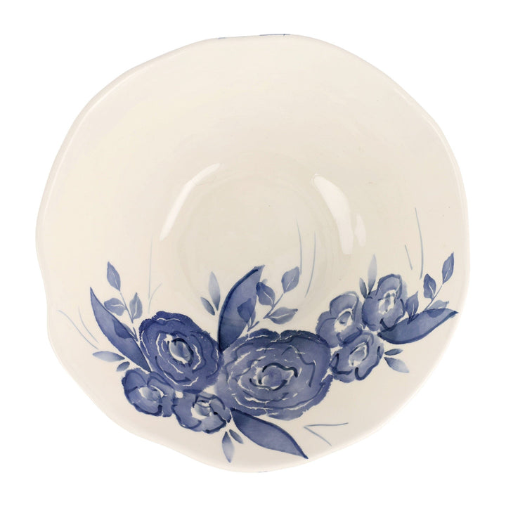 Handpainted bouquets of flowers in rich blue glazes adorn each Blue Camellia Deep Serving Bowl, bringing the vitality of nature to your table all year round.