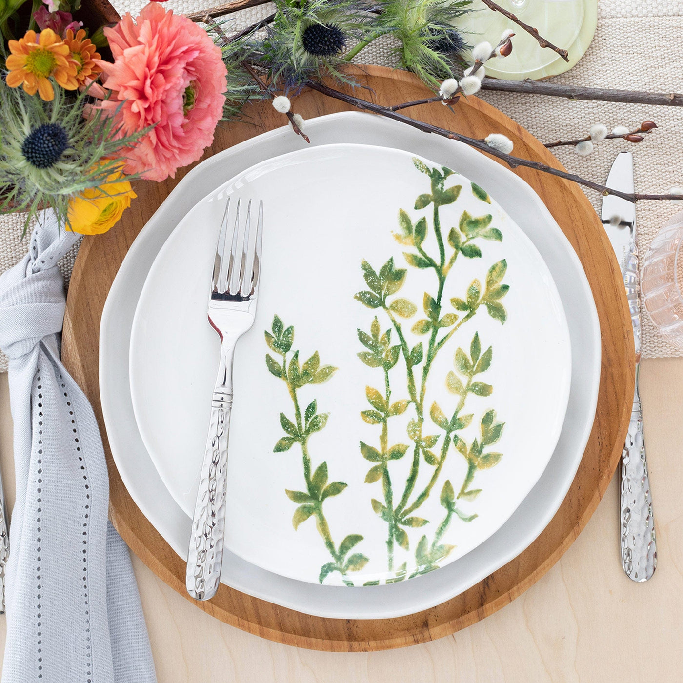 The Fauna Myrtle Salad Plate outlines the delicate simplicity of nature’s greenery to depict what is commonly found during the hunt (la caccia) in Umbria.