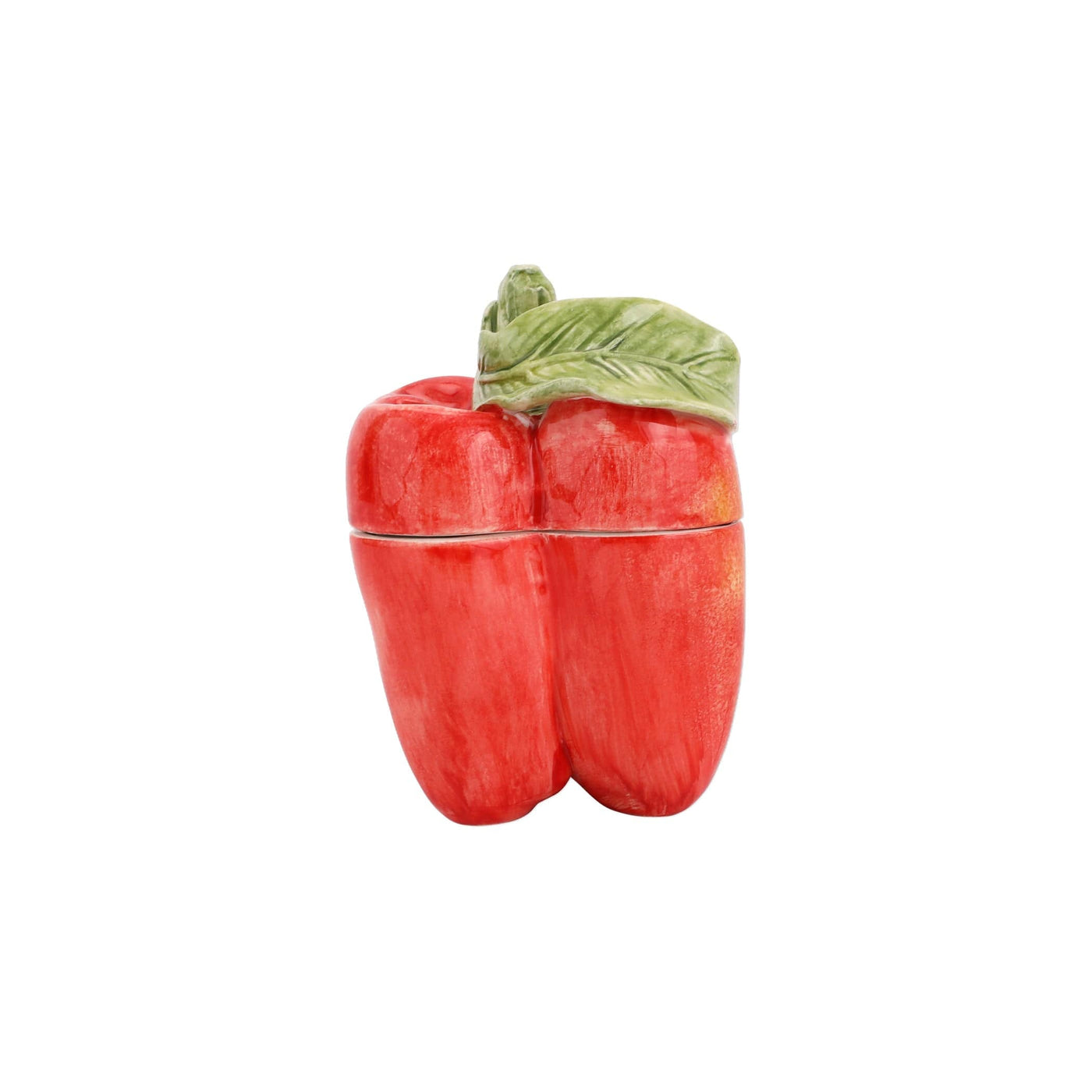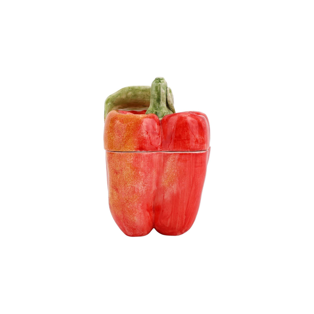 A delightful accessory piece, the handcrafted and vibrantly painted Figural Vegetables Red Pepper brings a punchy pop of nature's bounty into your home.