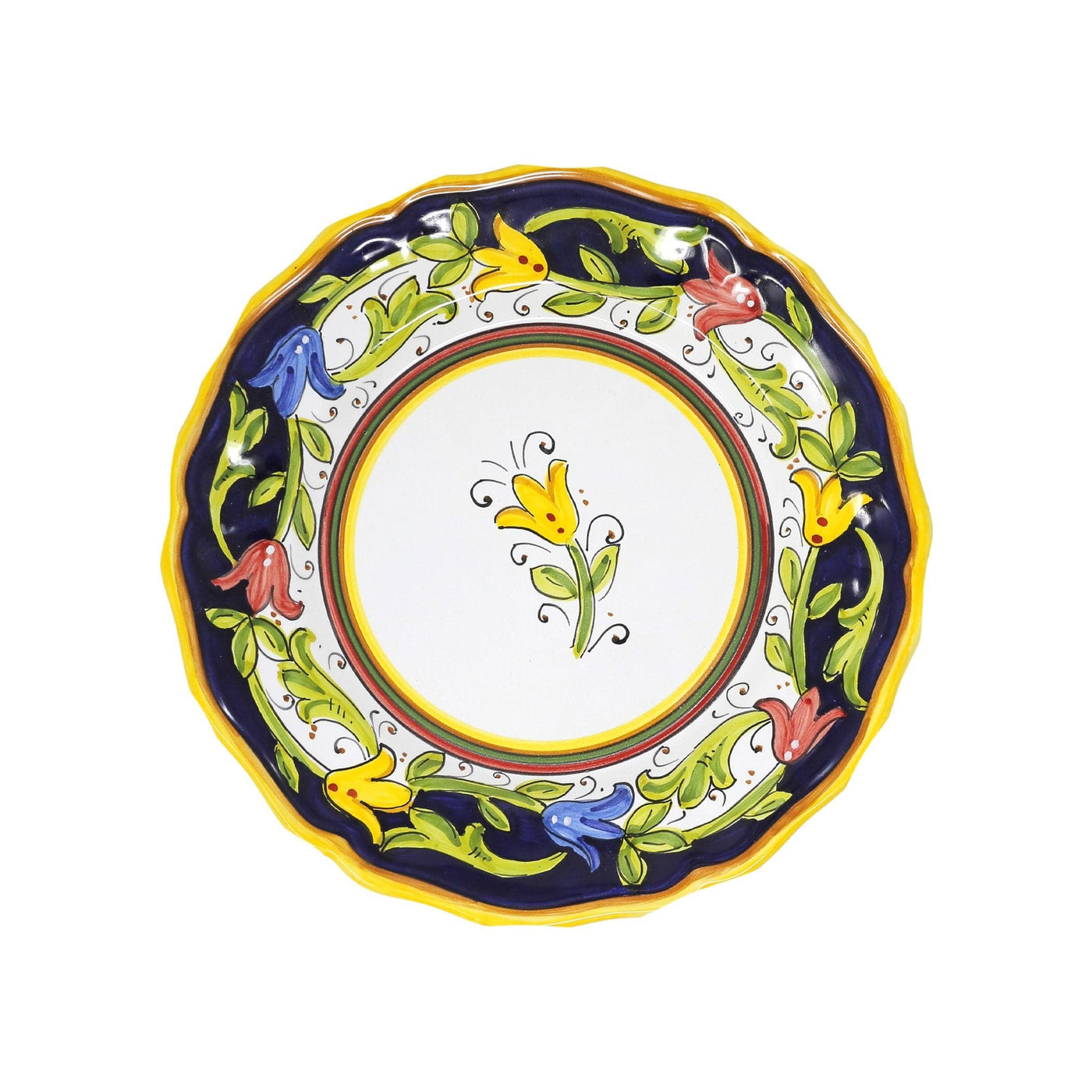 The Floral Blue Dinner Plate is a traditional Italian piece handpainted in Umbria.