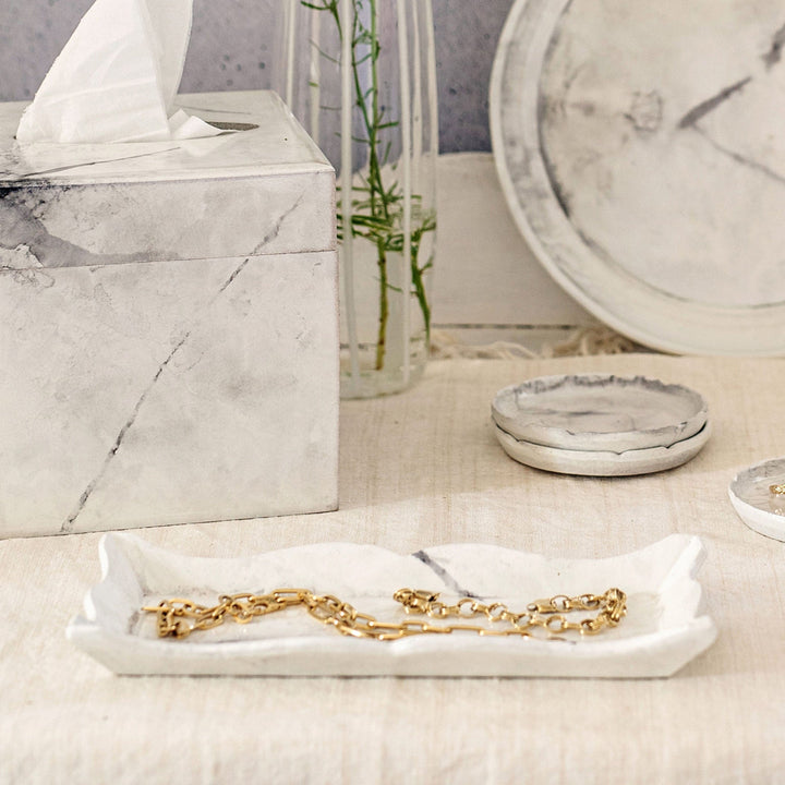 Florentine Wooden Accessories Marble Small Rectangular Tray
