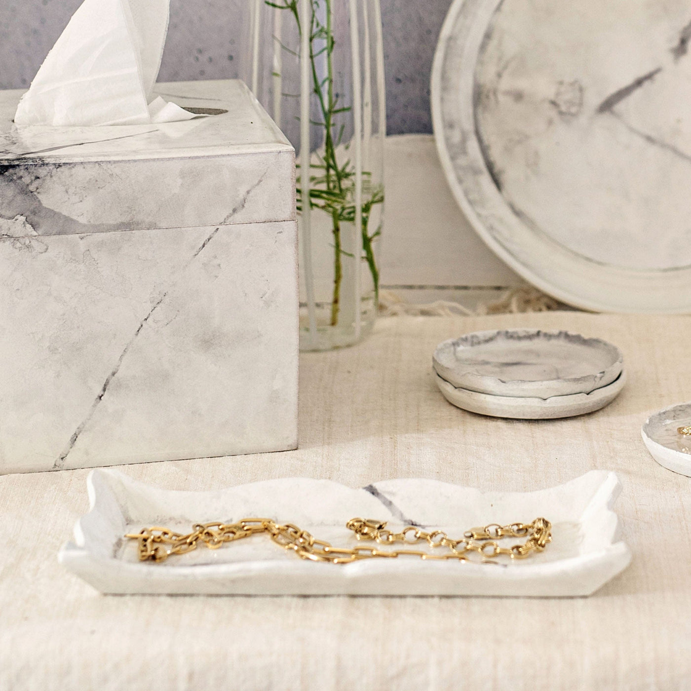 Traditional shapes, soft curves, artistic details, and radiant hues make the Florentine Wooden Accessories a timeless statement collection. Inspired by the artistry of the Renaissance, maestro artisans handcarve each Florentine Wooden Accessories Marble Small Rectangular Tray, and it brings brings Italian panache to your home.