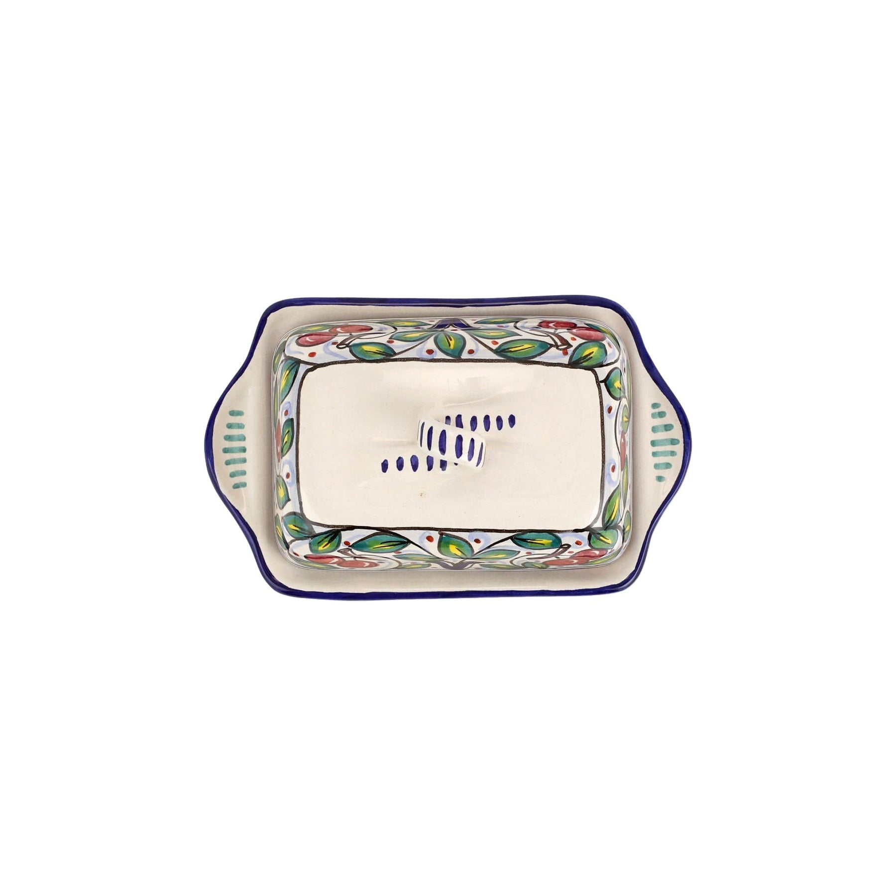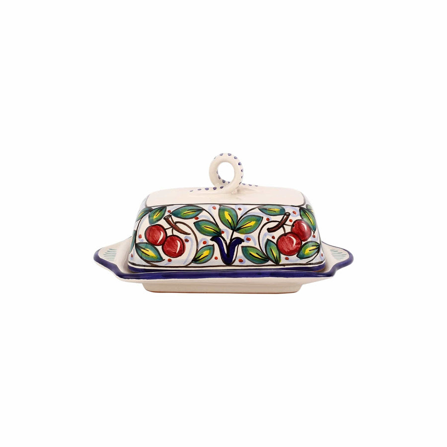 A classic design, the Frutti Cherries Butter Dish is handpainted in Deruta and pays tribute to the timeless technique used to paint ceramics in this area of Umbria that has been passed down for generations.