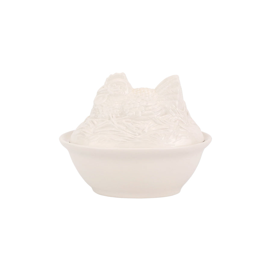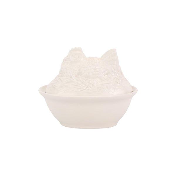 With intricate details in a soft shade of white, the Hen Tureen is both understated and a statement piece on your table.