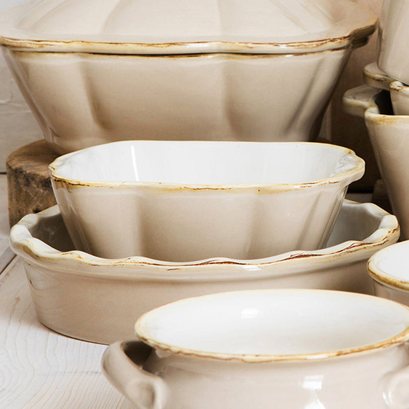 Featuring scalloped edges and an elegant hue, the Italian Bakers Small Square Baker is part of VIETRI's newest line of bakeware. Handcrafted of Italian stoneware in Umbria, this unique size and fun shape is perfect for gatherings and family get-togethers.