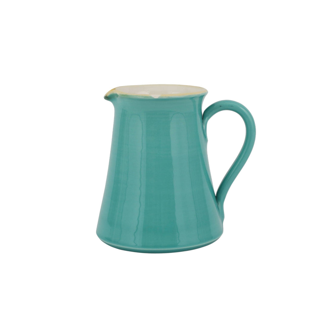Featuring a bright, beautiful hue, the Italian Turquoise Short Pitcher is handcrafted of Italian stoneware in Umbria. The petite size and fun shape is perfect for all gatherings from celebratory brunches or cozy meals at home.