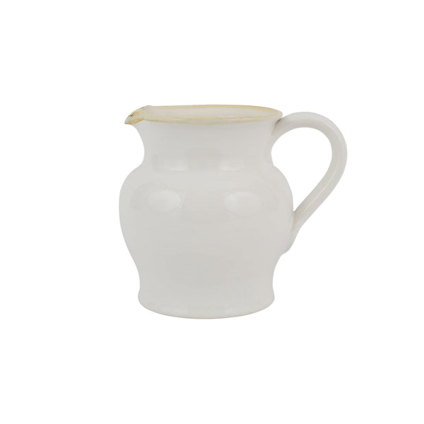 Featuring a bright, beautiful hue, the Italian White Short Round Body Pitcher is handcrafted of Italian stoneware in Umbria. The petite size and fun shape is perfect for all gatherings from celebratory brunches or cozy meals at home.