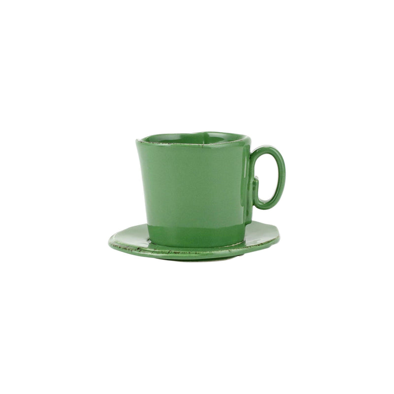 Beloved for its sophisticated simplicity, versatility, and durability, Lastra is our bestselling collection. The understated elegance, clean lines, and unique shape of the Lastra Espresso Cup & Saucer make it a timeless choice for any table and a charming way to enjoy your coffee. Lastra’s design was inspired by the circular wooden slabs used for centuries to create the outer mold in cheesemaking throughout Italy. When fashioned together with twine, the hoop was left with a slight overlap to help maintain the shape of the cheese mold. Maestro molder Stefano Roselli incorporates the overlapping detail into the entire design, from its foot to its rim. A dark dusting on the edges of each piece suggests the ash that was used to preserve these cheeses and highlights each unique silhouette.