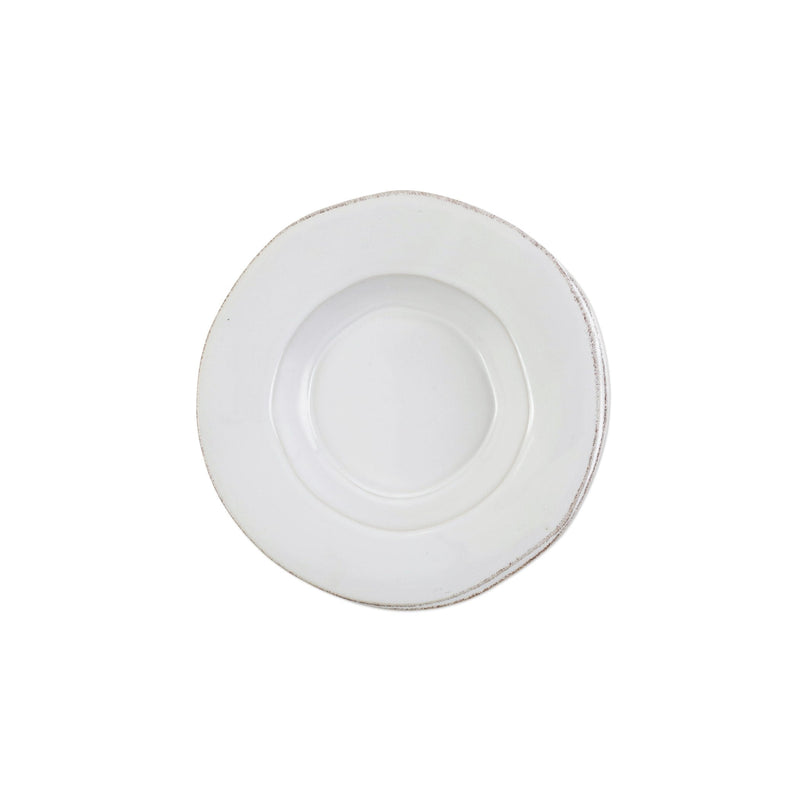 Inspired by the circular wooden slab used for centuries to create the outer mold for round wheels of Italian cheeses, the unique Lastra White Rimmed Pasta Bowl excites with its charming and authentically Italian appeal.