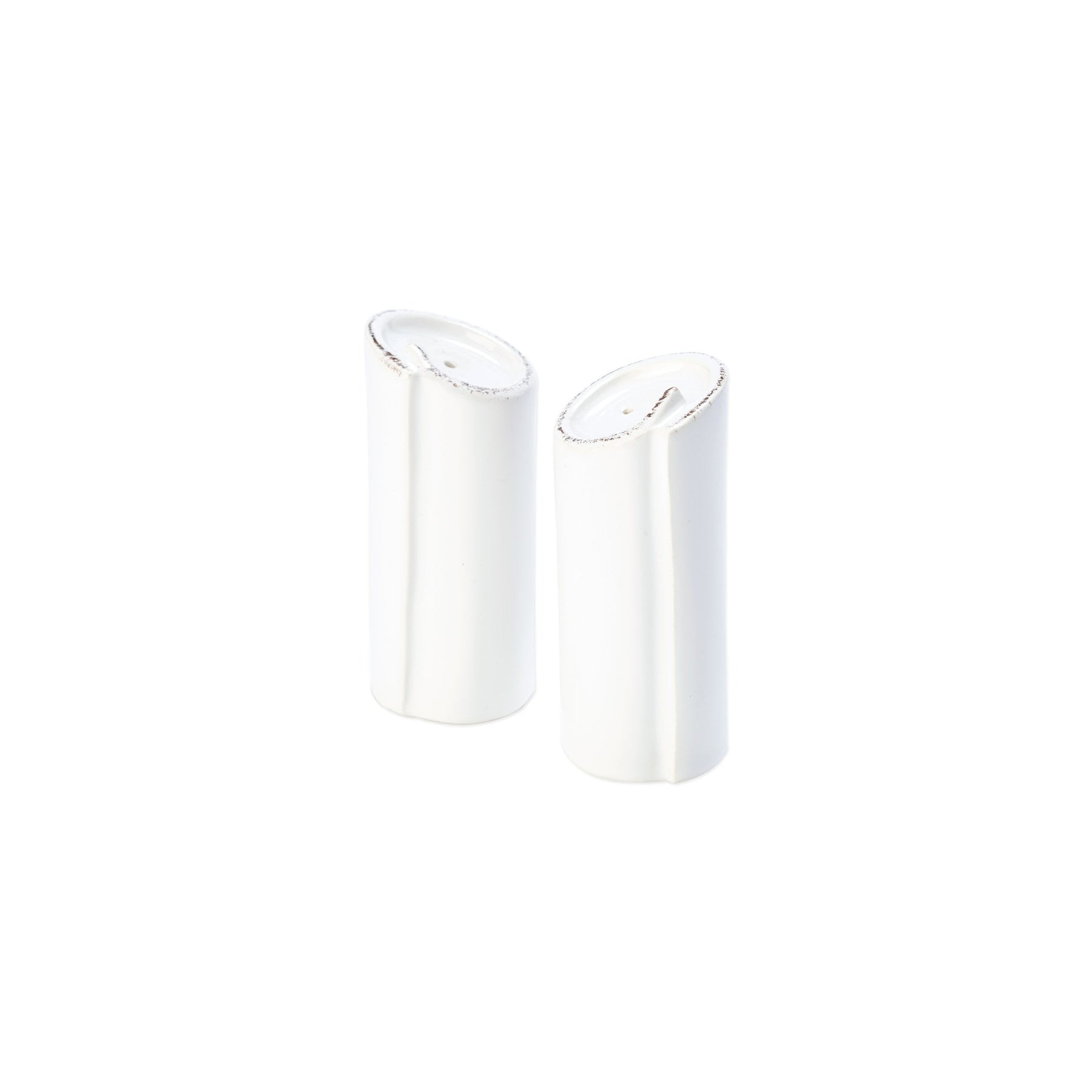 Rustic yet chic, the Lastra White Salt and Pepper add a clean and sophisticated feel to your table. An overlapping wooden mold, used for centuries to form cheeses throughout Italy, inspired this collection.