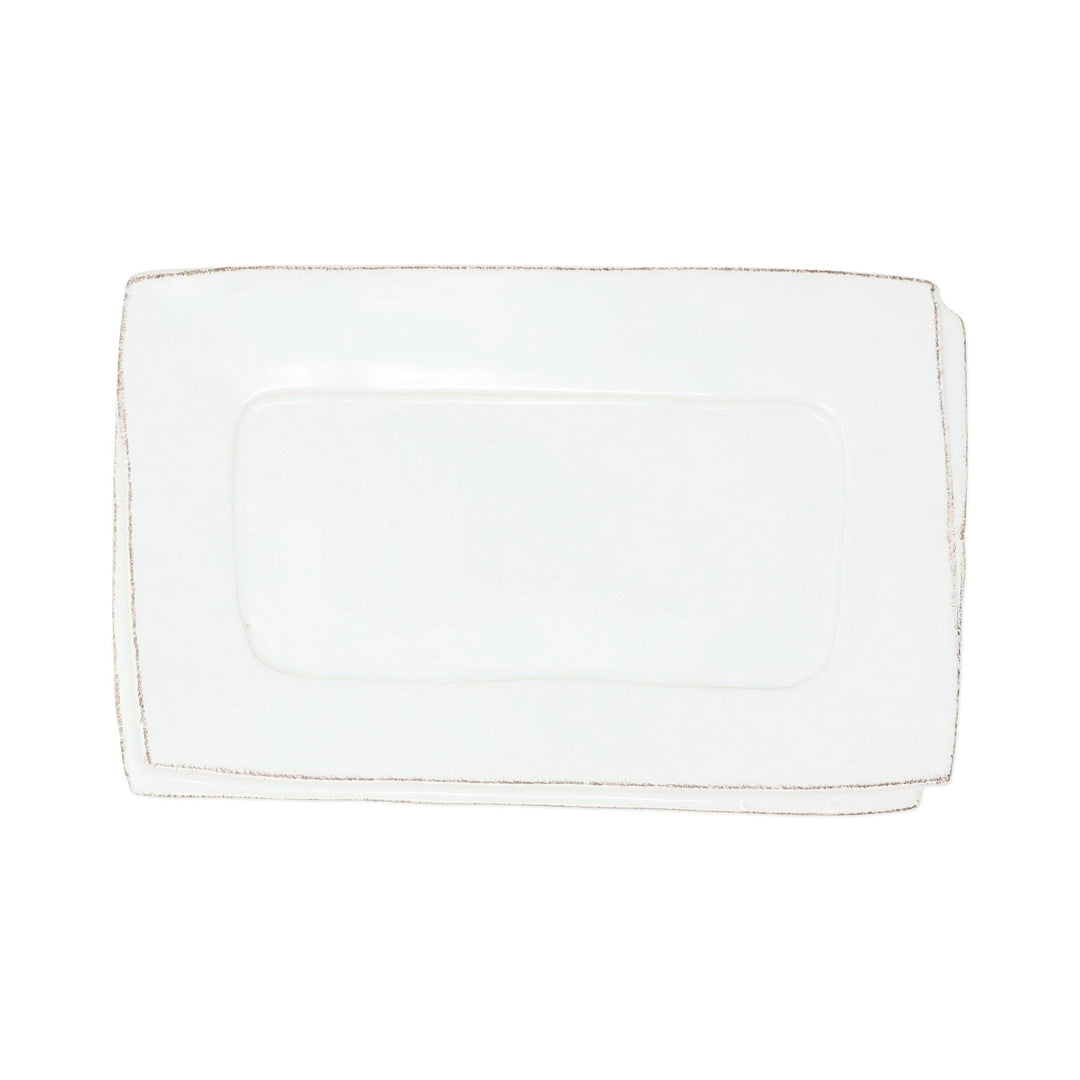 A beautiful combination of bright white with subtle rustic accents, the Lastra White Small Rectangular Tray is perfect for serving olives and grapes or an assortment of fresh fruit.