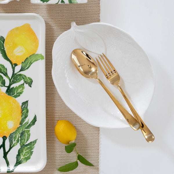 Inspired by the bountiful, robust lemons that flourish in the sunshine along the Amalfi Coast, the Limoni collection is cheerful and iconically Italian. The Limoni White Figural Lemon Platter is a charming serving piece that will transport you to the Mediterranean.
