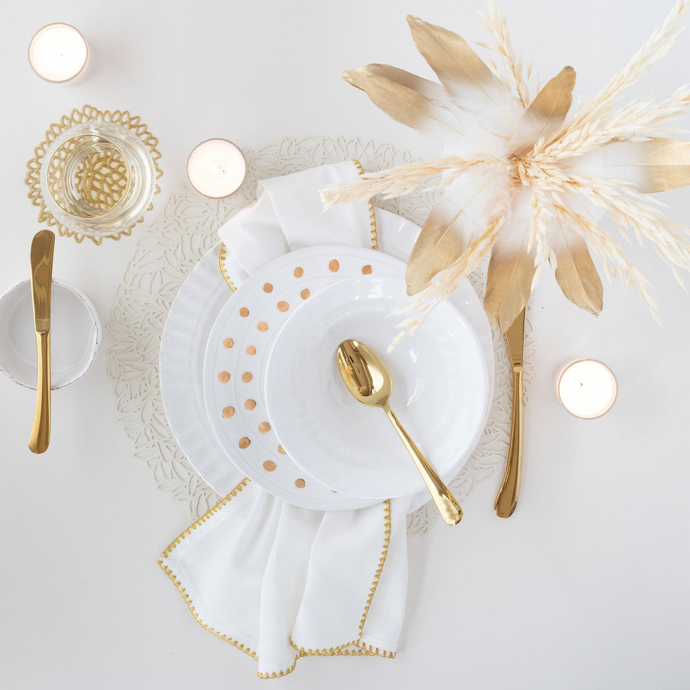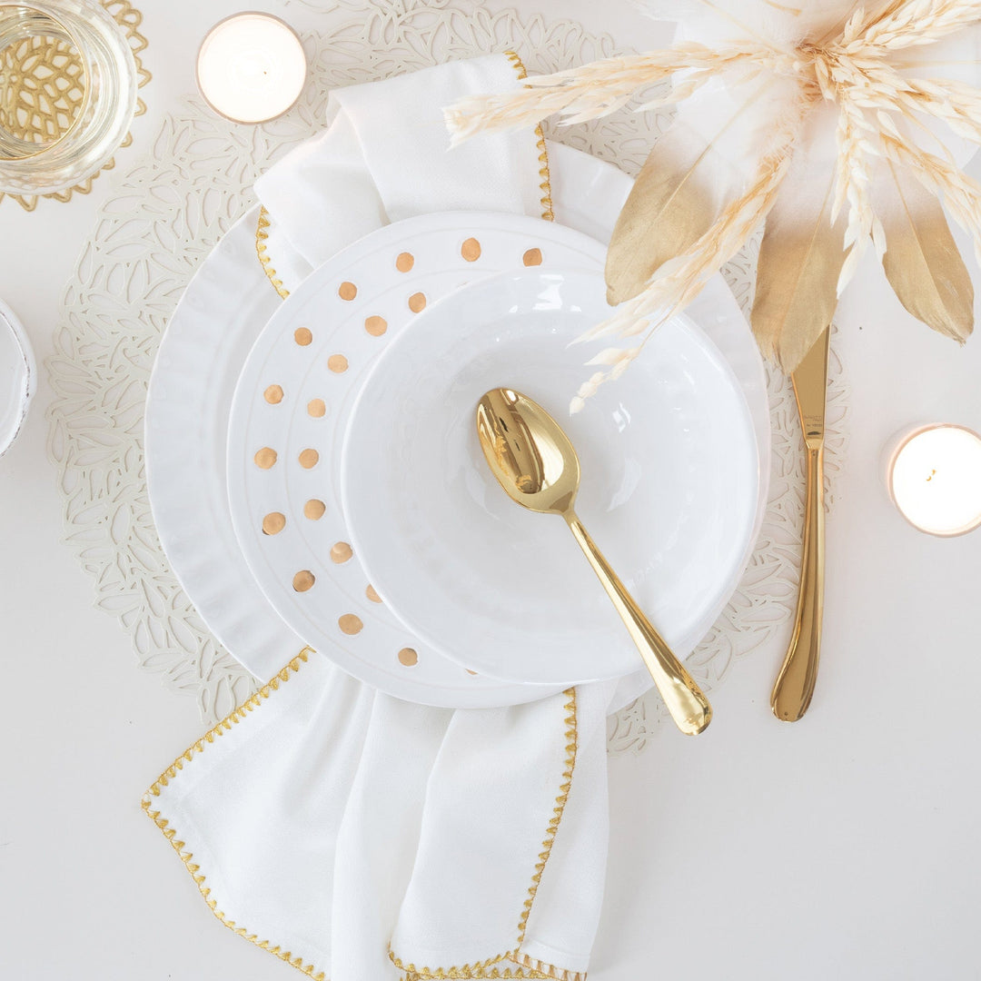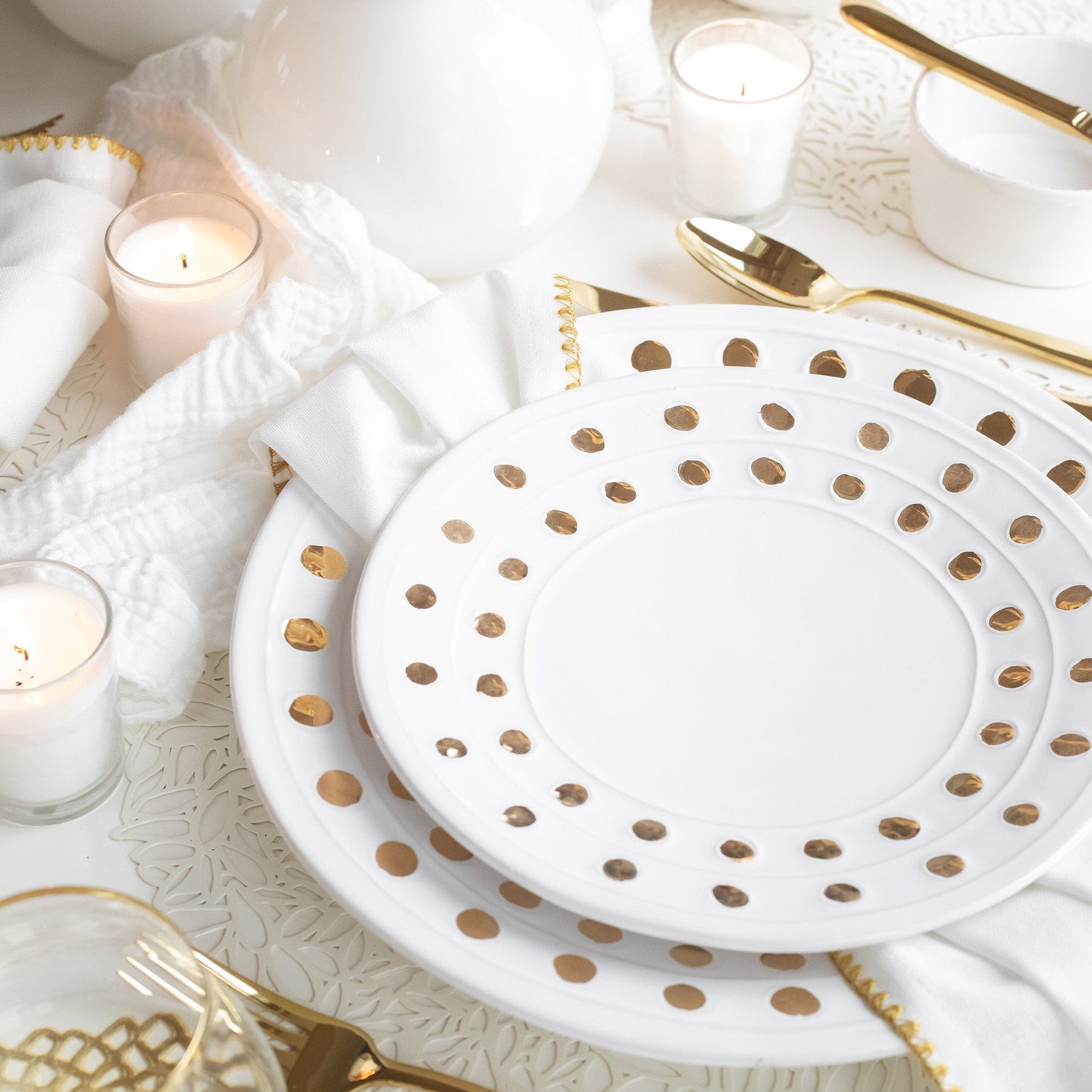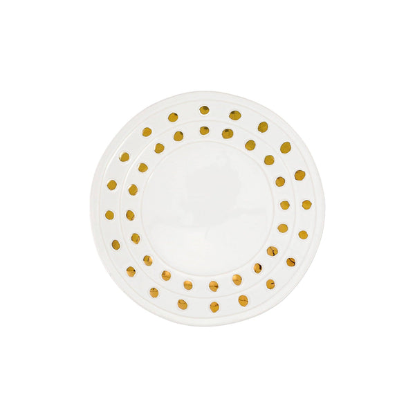 The famed Medicis ruled Florence during the Renaissance. Comprised of bankers and wool merchants, the influential family were patrons of the arts and contributed greatly to the prosperity of Florence. The traditional Medici coat of arms is beautiful and ornate with colors of red, blue, and gold, and our new Medici collection takes a modern spin on it by highlighting one of those components: the golden palle, or balls. At once historic and contemporary, the Medici Gold Salad Plate honors Italian heritage while also exuding fresh inspiration.
