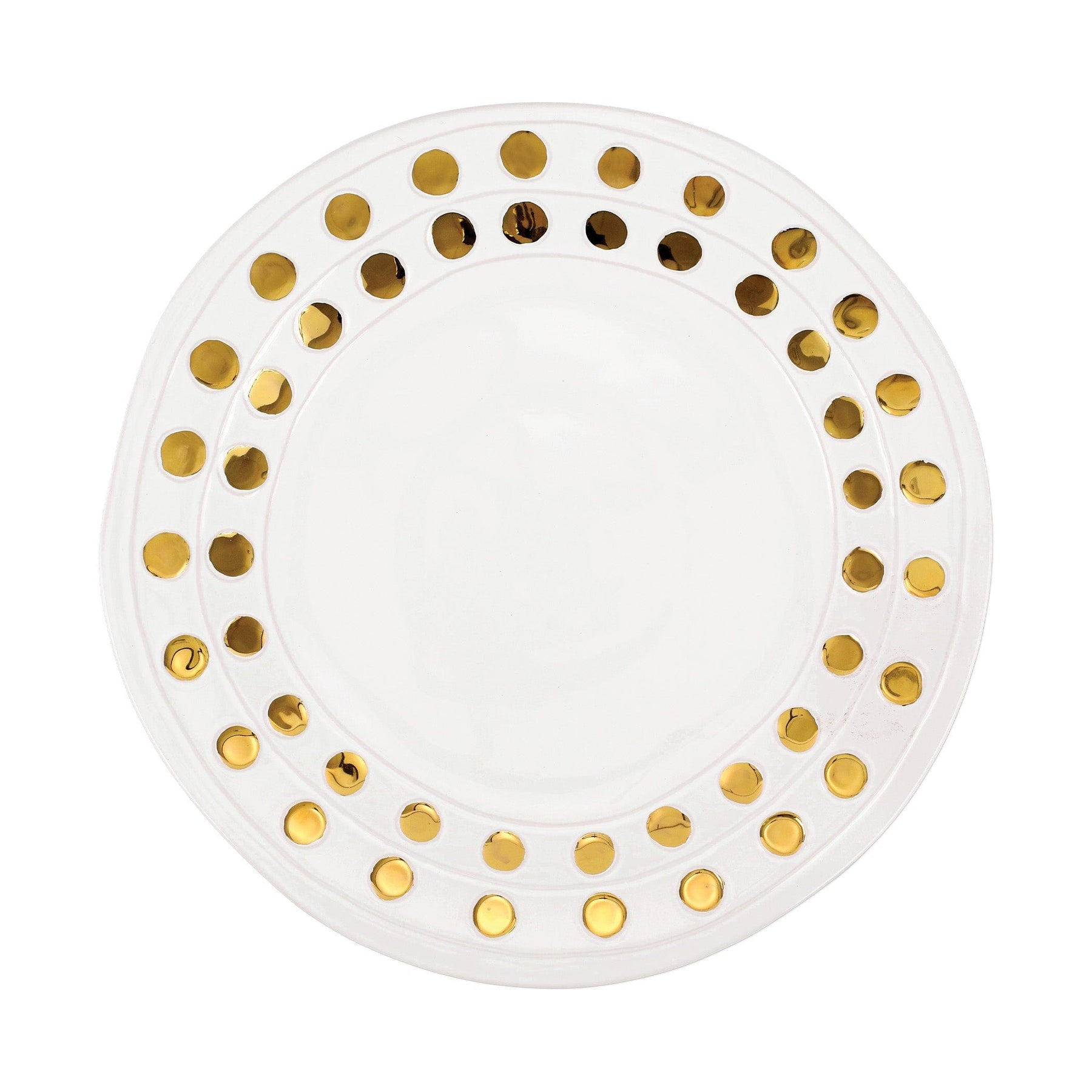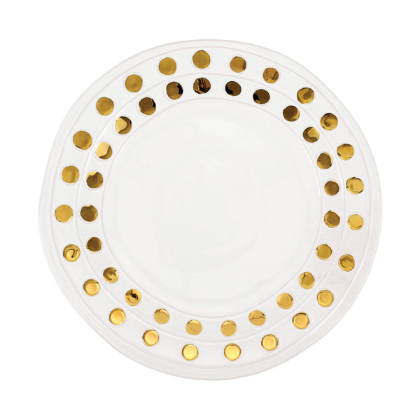 The famed Medicis ruled Florence during the Renaissance. Comprised of bankers and wool merchants, the influential family were patrons of the arts and contributed greatly to the prosperity of Florence. The traditional Medici coat of arms is beautiful and ornate with colors of red, blue, and gold, and our new Medici collection takes a modern spin on it by highlighting one of those components: the golden palle, or balls. At once historic and contemporary, the Medici Gold Medium Service Plate/Charger honors Italian heritage while also exuding fresh inspiration.