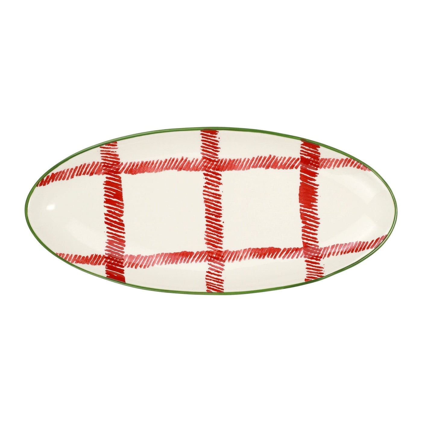 Festive and playful, the Mistletoe Plaid Narrow Oval Platter is intended for the everyday entertainer, especially during the hustle and bustle of the holiday season. Become the hostess with the mostess or the go-to gifter with this festive pattern.