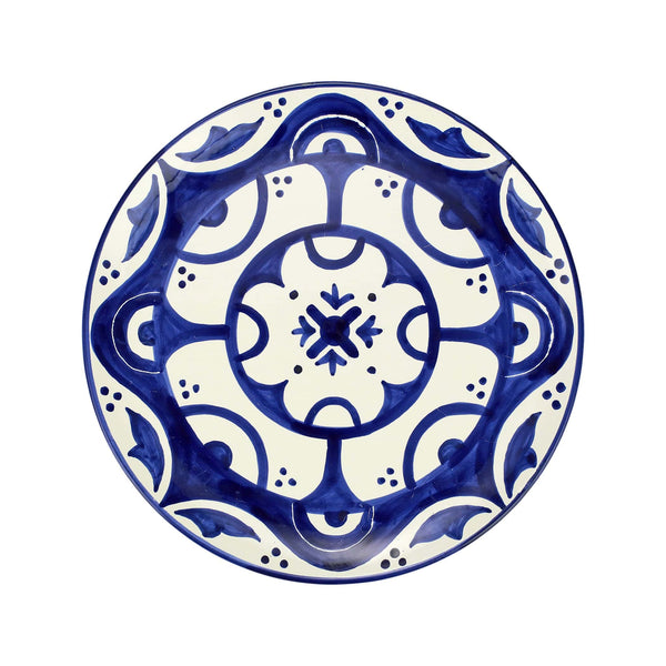 Inspired by the handpainted tiles found throughout Italy, especially Sicily, Mosaico delights in bold tones of sapphire blue and crisp white. The Mosaico Cobalt Round Platter makes a striking statement on an entry table, as a centerpiece on your dining table, or hung as a wall plate.