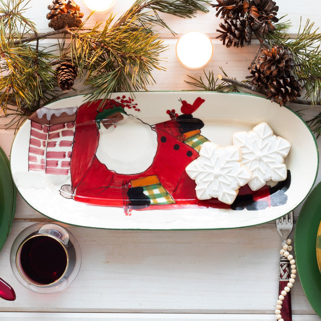 Maestro artisan Alessandro Taddei’s childhood memories of stories his mother used to read to him about Italy’s Santa Claus evolve on the Old St. Nick Multicultural Small Oval Platter. Embracing diversity, Alessandro’s whimsical designs resonate with various cultures as Old St. Nick travels around the world delivering gifts to children near and far.